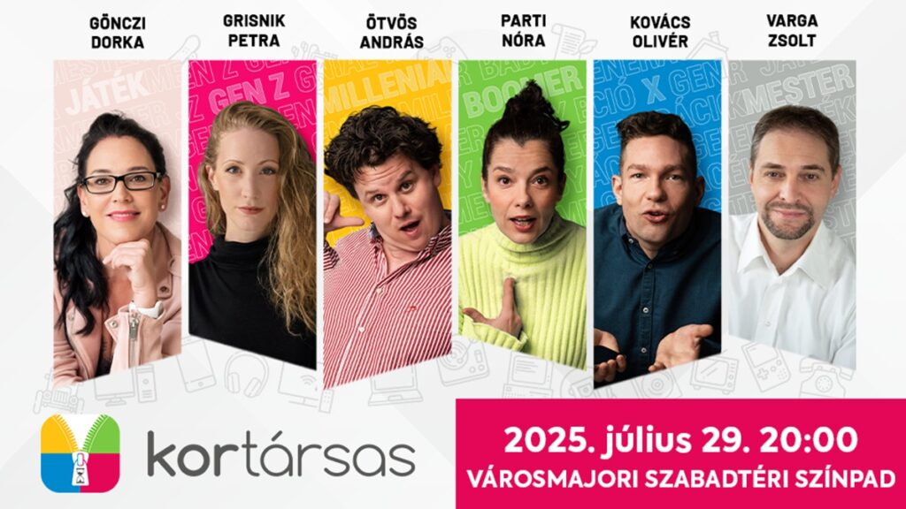 A Kortársas társulata a Válótársas és a Munkatársas előadásokból is már jól ismert és megszokott felállásban, az improvizációs színészi játékot és a mediációs szakmaiságot felhasználva emeli fel a legjellemzőbb ellentéteket szülő helyzeteket megmutató görbe tükröt. Önkritikus mosollyal belenézve lehetőség nyílik észrevenni, hogy bizony a legtöbb esetben a másik generáció képviselője is ugyanúgy jót akar, ahogyan mi magunk, csak nem tanultuk meg megérteni egymást. A félimprovizációs előadás arra tesz kísérletet, hogy megmutassa, függetlenül attól, milyen betű vagy éppen név jelzi az általunk képviselt generációt, alapvetően olyan nagyon azért nem különbözünk egymástól, hiszen mindannyian szimplán esendő emberek vagyunk. Mindannyian ugyanazt keressük, ugyanúgy tudunk szomorkodni, félni, és természetesen ugyanolyan felszabadultan nevetni is saját magunkon és a hibáinkon. Jegyekért ide kattints!