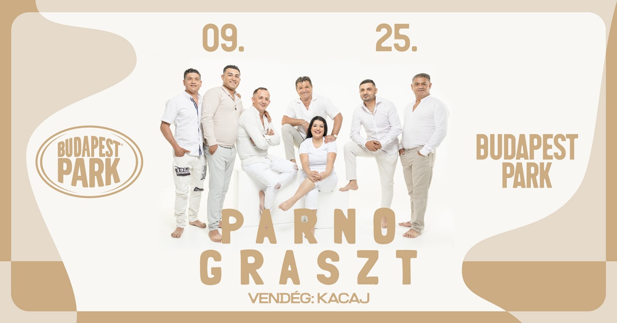 A Parno Graszt az egyik legeredetibb autentikus cigányzenét játszó zenekar, amely több mint harminc éve hozza el a közönségnek a hamisítatlan örömzenét. Egyedi színpadi megjelenésük, hagyományos hangszereik, energikus előadásmódjuk különleges élményt nyújt. Ezt családias hangulattal fűszerezik, amely nemcsak a zene iránti szenvedélyből fakad, hanem a tagok közötti rokoni kötelékből is. A világ számos pontján, Európától Ázsián át Amerikáig arattak már sikert, a repertoárjuk pedig folyamatosan frissül, és gyakran működnek együtt elismert hazai előadókkal is. Koncertjeiken a vidéki kocsma hangulata és a szenvedélyes cigány ritmusok kelnek életre, amit idén is elhoznak a Park színpadára. Jegyekért ide kattints!