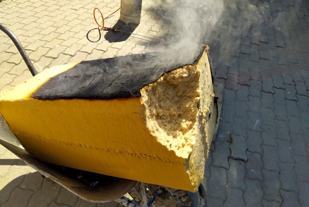 egy gázpalack segítségével alaposan megpörkölt egy farost hőszigetelő tömböt.