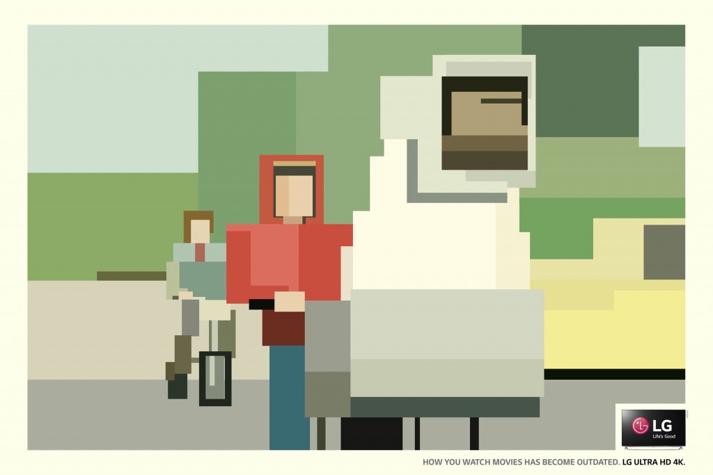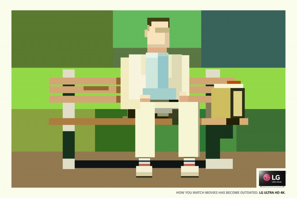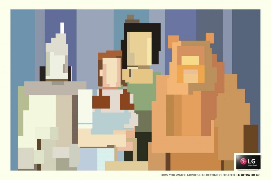 Az LG vicces reklámokkal próbálja meg eladni nekünk 4K-s tévéit, és mondjuk az tény, hogy a régi, innen-onnan letöltött, pixeles csodáink nagyjából így néznének ki a kijelzőiken. Mindenki felismeri a filmeket?