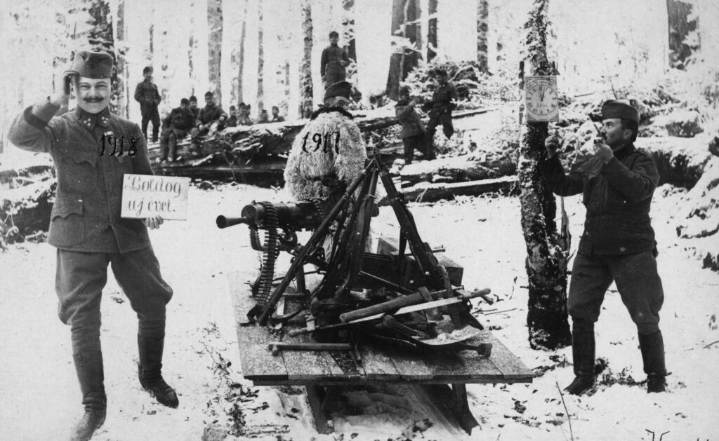 Az igazi optimizmus: 1917-ben, az első világháborúban, a fronton mosolyogva boldog új évet kívánni (Forrás: Fortepan/Jankó Attila)