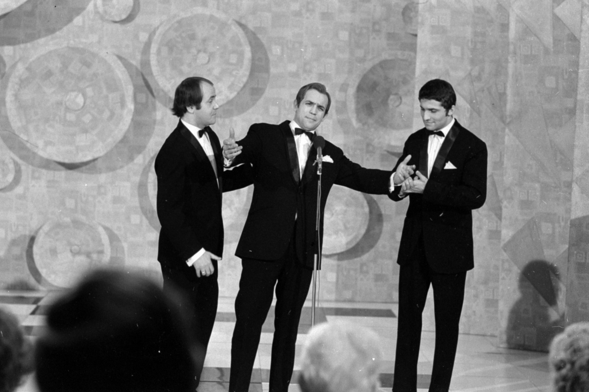 A Magyar Rádió és a Magyar Televízió Null:nulla című 1970. évi szilveszteri vetélkedője. Haumann Péter, Dózsa László és Székhelyi József színművészek (Forrás: Fortepan/Szalay Zoltán)