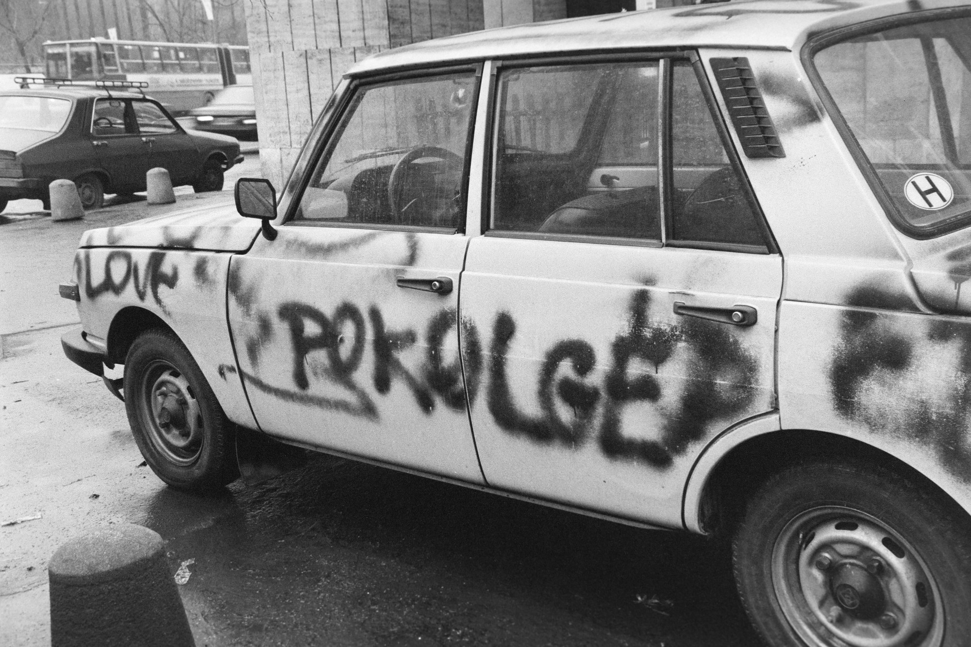 1990 szilveszter éjjelén fejezte ki Pokolgép-rajongását valaki egy Wartburgon Budapesten, az Erzsébet körút és a Rákóczi út sarkánál, az EMKE előtt. Balra a háttérben a Corvin Áruház (Forrás: Fortepan/Vimola Károly)