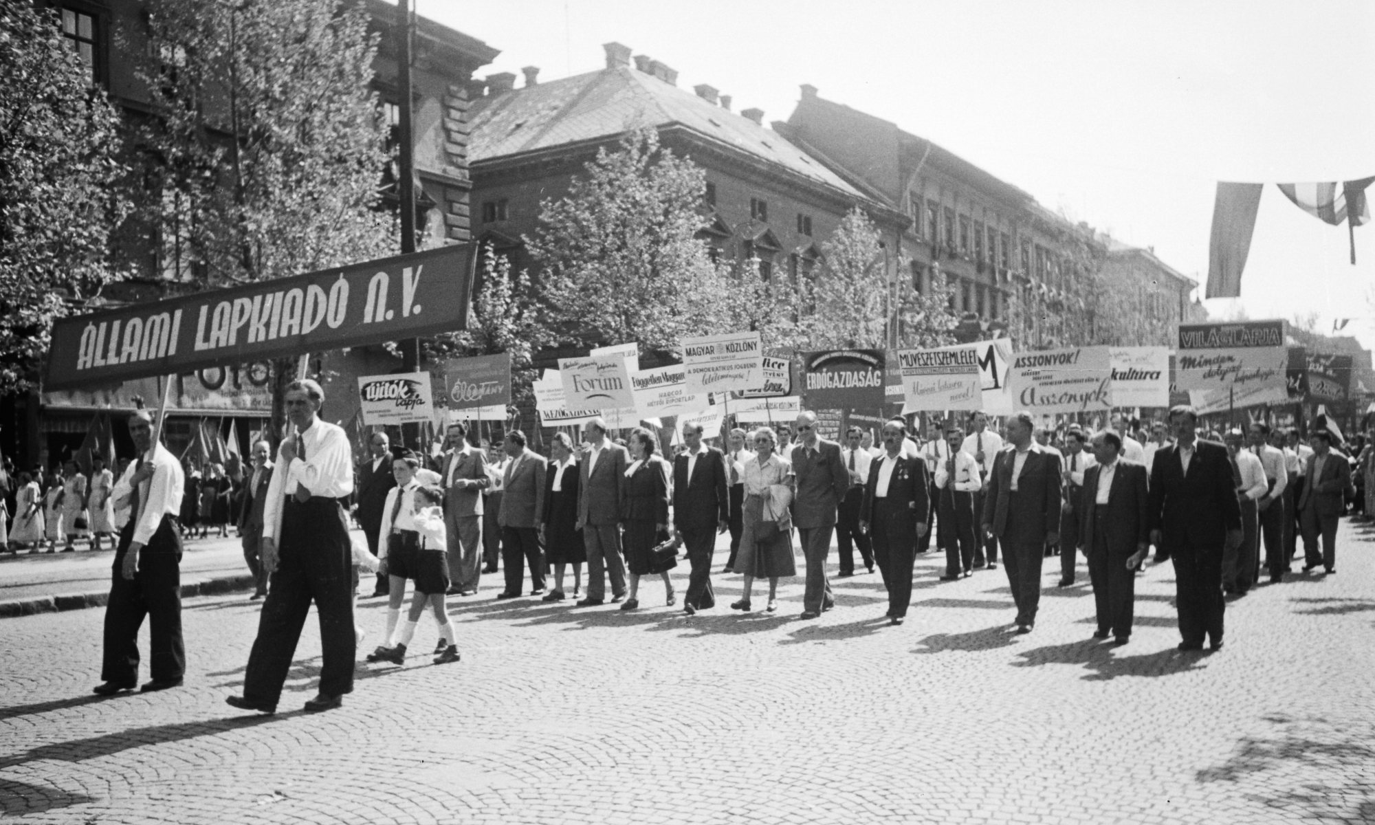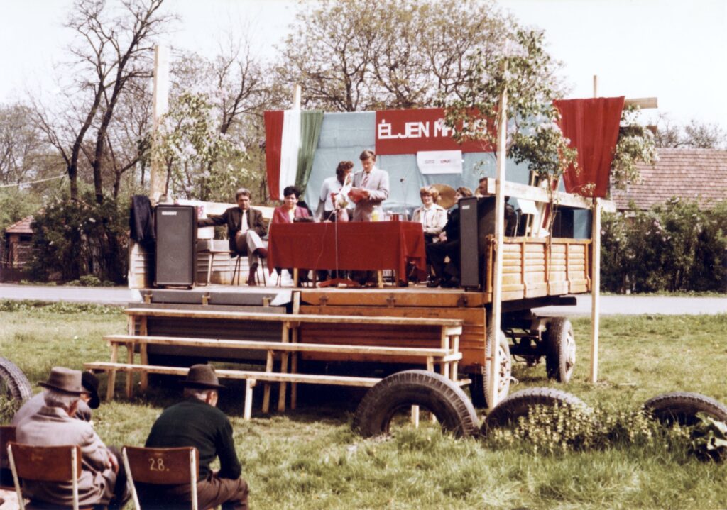 Utána a pártházzal szembeni parkban zajlott a majális, olcsó sör és virsli aláfestéssel. Elmosódva még vattacukrot látok, barnás sörösüvegeket markoló férfiak alakjait, a lombokon átszűrődő csalóka napfényt, szóval olyasmit, amit egy szocialista Renoir – egy Renoir elvtárs – szívesen megfestett volna.