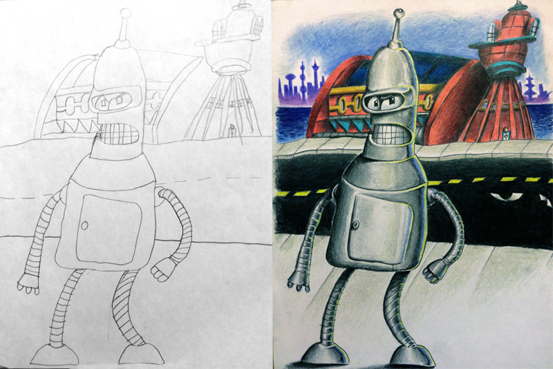 Fred Giovannitti, a Las Vegas Custom Tattoos művésze egy ideje már azzal üti el az idejét, hogy minden utazására magával viszi egyik gyermekének a rajzát, melyet az úton kifestőnek használ. Az eredmény pedig szemkápráztató.