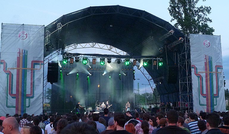 Eleve akkora színpada van, ami nem megszokott egy hasonló szórakozóhelytől. Hatalmas. A Park agyai arról árulkodtak, hogy a Sziget Nagyszínpadával közel megegyező riderrel készítették el, tehát szólnia is kell rendesen. És azt kell, hogy mondjuk, a színpad úgy szól, mint a dög. Hallani, hogy külföldi produkciókra tervezték, nincsenek kompromisszumok, de azt természetesen ne várjuk, hogy a bejárati kapunál is lekapja a hajunkat az orbitális hangerő. Ha döngő basszust szeretnénk, előre kell fáradnunk a színpad irányába, ott viszont megkapjuk a magunkét rendesen. A zenei felhozatal eléggé vegyes, ez nem a véletlen műve, mindenkinek meg kell találnia a számítását, ezért a PopArtban elektronikus bulizene szól, a Retro Kertben minden, ami nem mai, míg a Nagyszínpad keverőjénél akármi beleférhet, amolyan egyetemi buli jelleggel.