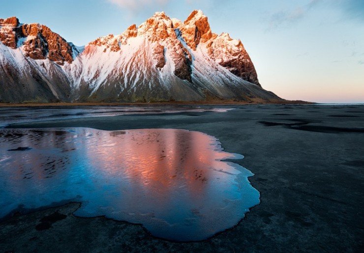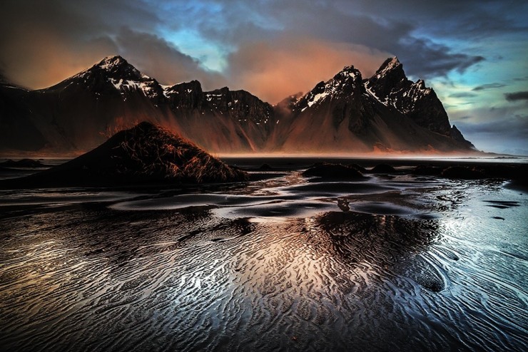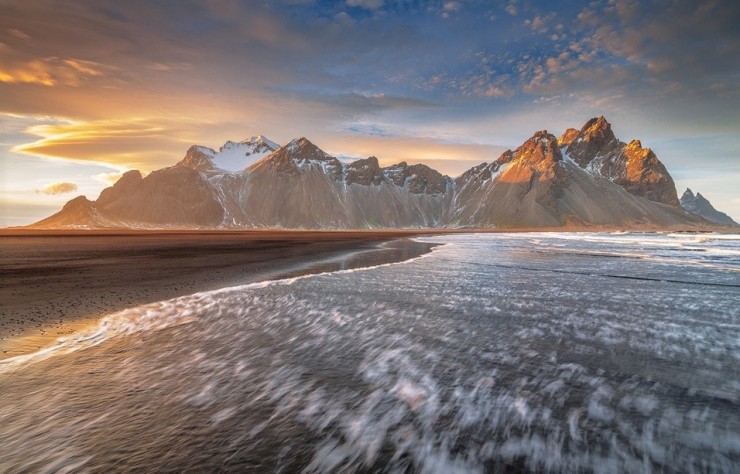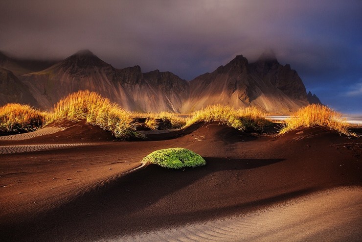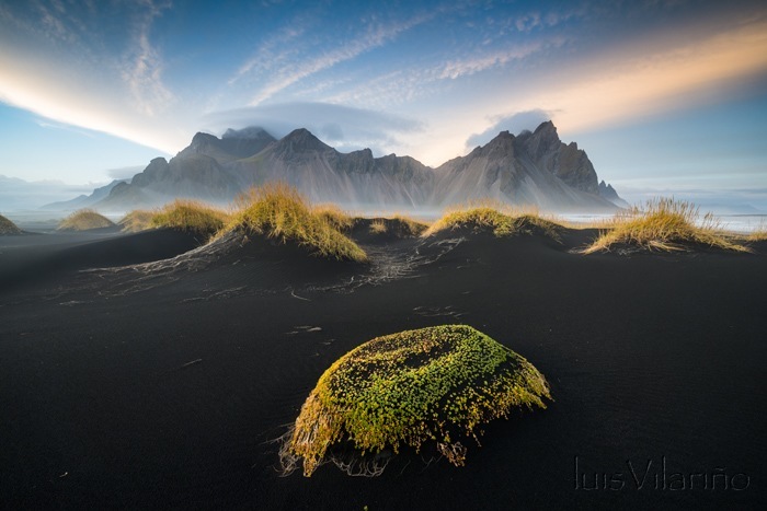 Izland legfestőibb tája a sziget dél-keleti részén található 454 méteres Vestrahorn és az előtte elterülő igazi különlegességnek számító fekete homokos Stroksness part.