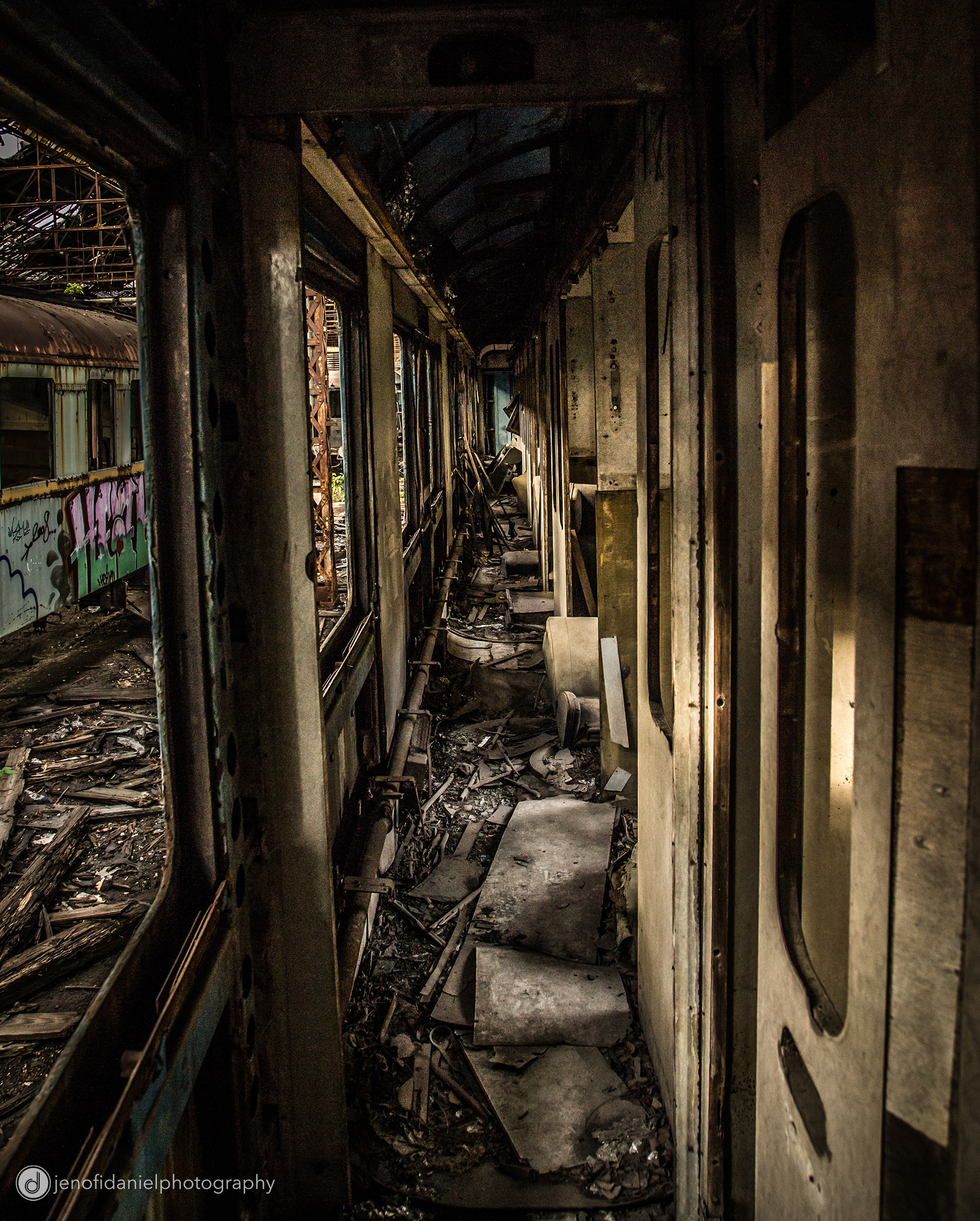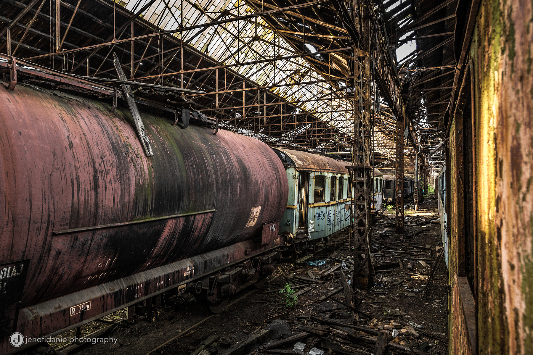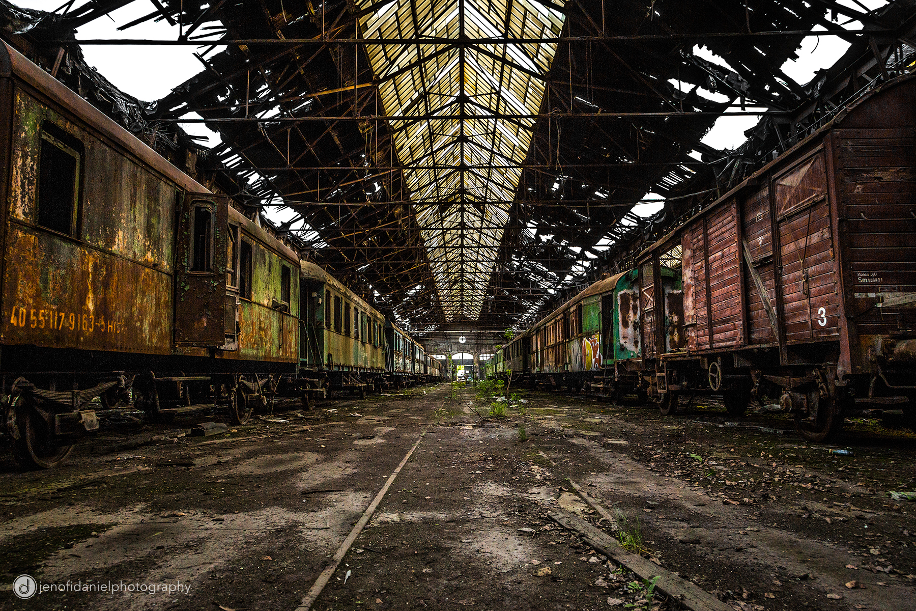 Jenőfi Dániel fotós rozsdás gőzmozdonyok és vonatroncsok között mászkált és készített egy egyszerre csodás és közben tök nyomasztó hangulatú fotósorozatot a helyről, vagyis a korábbi ipari csarnokról, ahol a vonatok most már csak pihennek.