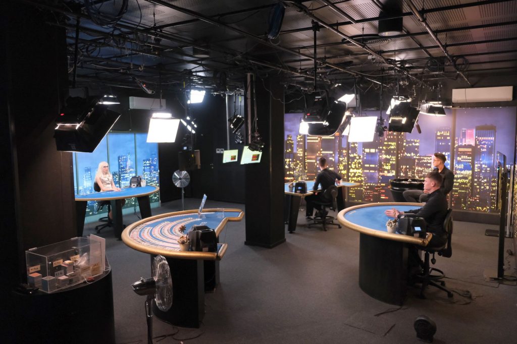 A kártyaasztaloknál a keverőgépekből ugyanúgy húzzák a lapokat az osztók, mint a „földi” kaszinókban. És bármilyen meglepő, ugyanúgy egy légtérben is történik minden. Egy tévéstúdió és egy nagy játékterem fura hibridje ez, ahol pörög, kattog, csattog a rulettkerék, a játékvezetők pedig együttérző, jó esetben a játékossal együtt örülő megjegyzésekkel kísérik az eseményeket, csak közben minden asztalról megy az online streaming is.