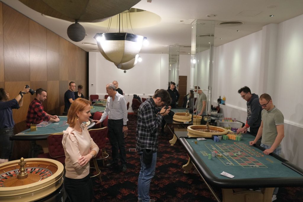 „Földi” kaszinó: így hívja a szakma azokat a játéktermeket, ahol klasszikus módon megy a játék, az asztalnál ülő játékosokkal és a rulettet kezelő krupiéval, a kártyákat terítő osztóval. Egy ilyen kaszinóba, a Nagy Lajos király úti Atlantisba kaptunk mi is egy sajtómeghívást, de nem a hagyományos játékteremben, hanem az akár hús-vér krupiéval, osztóval, de online futó rulett-, blackjack- illetve pókerasztalok mellett osonhattunk körbe úgy, hogy közben ne lógjunk bele a kameraképekbe, ne zavarjuk meg a játékot.