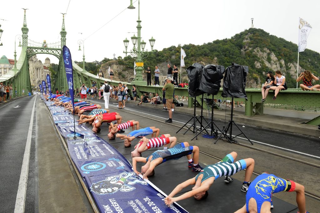 A hétvégére amúgy is lezárt hídon megrendezett esemény fényét jelenlétével emelte a kék oroszlán, a vb kabalafigurája is.
