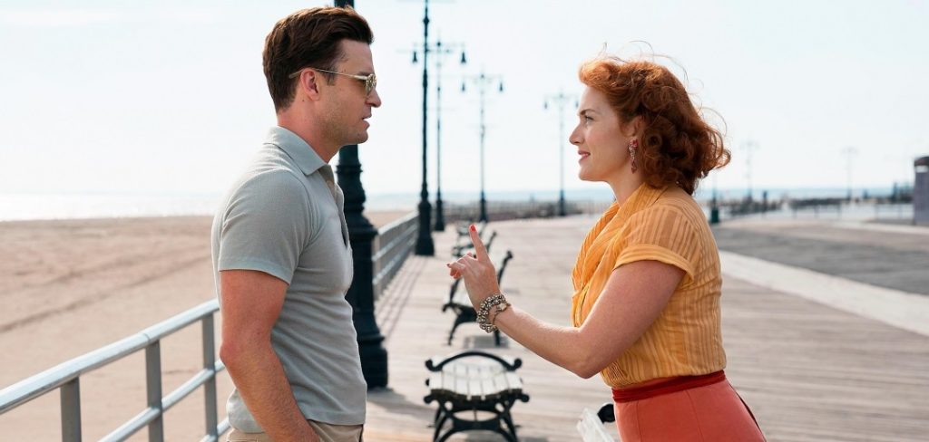 Hiába a tengerparti, vurstlis külsők, a Wonder Wheel – Az óriáskerék tulajdonképpen egy lekamerázott színdarab. Nem igényelne mozgóképet. Ne zavarjon meg senkit Coney Island színpompás vidámparkja, a Broadway-en is meg lehetne ezt háttérnek csinálni. Csodálatos dolgokra képes a technika és a díszlettervezői találékonyság: ledfal, kosztümök, miegyebek, s máris ott lennénk az ötvenes években, Justin Timberlake bejön (taps), elmondja a nyitó narrációt, aztán Kate Winslet is megjelenik (megint taps), Jim Belushit aztán megkülönböztetett szeretettel fogadja a színházi közönség (talán még nagyobb taps). Csak hát az a bibi, hogy miután kiörömködnénk magunkat, hogy juhé, élőben látjuk a sztárokat, alighanem ott is eléggé hamar elkezdenénk szemérmesen ásítozni.