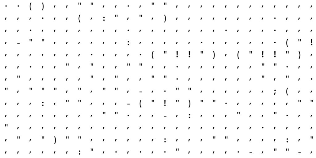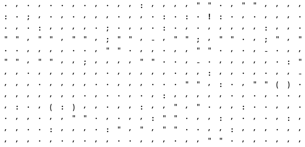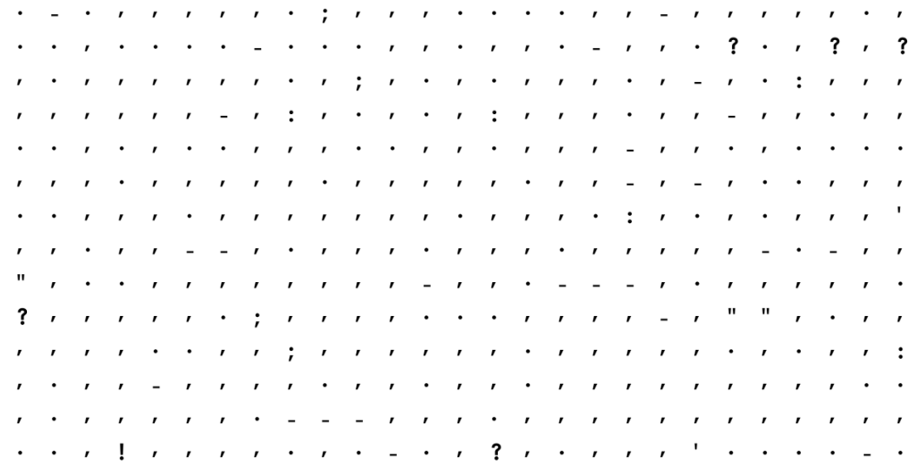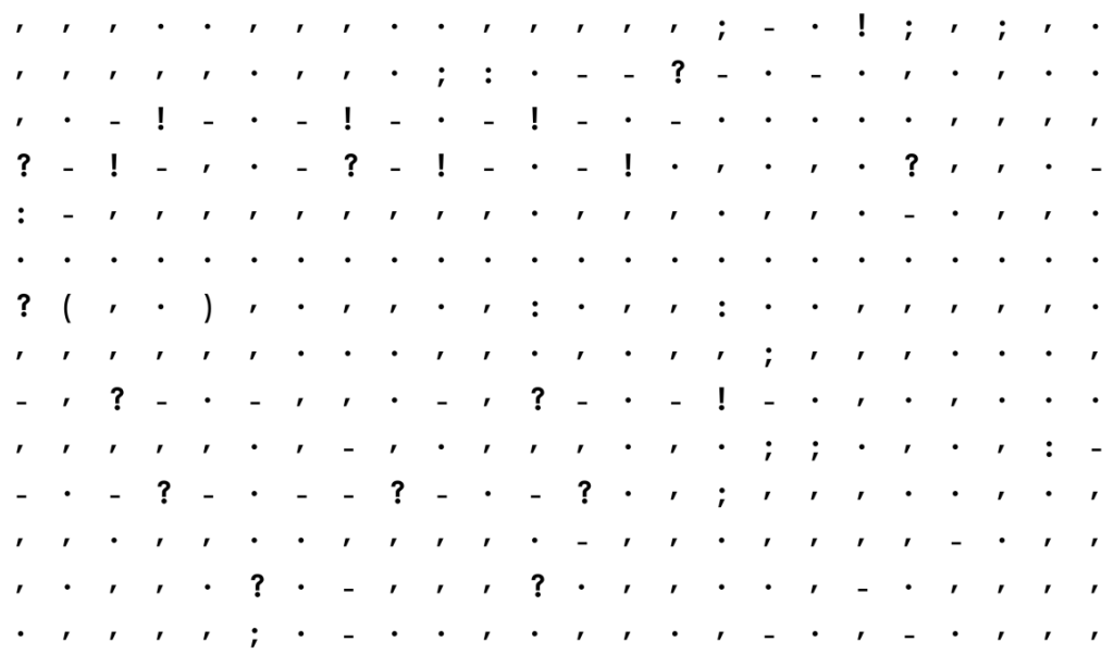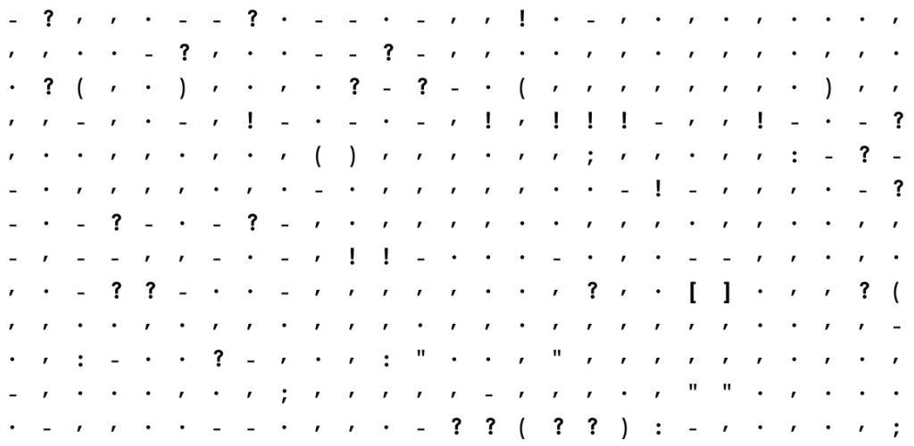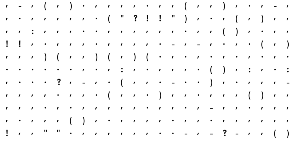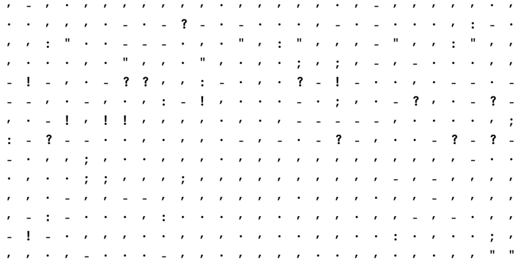 Egy adatvizualizációval foglalkozó szakember, név szerint Adam J. Calhoun kivette a regényekből a betűket és csak az írásjeleket hagyta meg, ugyanis érdekelte, hogy van-e különbség egy 1936-ban megjelent regény egy fél évszázaddal később íródott regény írásjeleinek használati gyakorlata között.