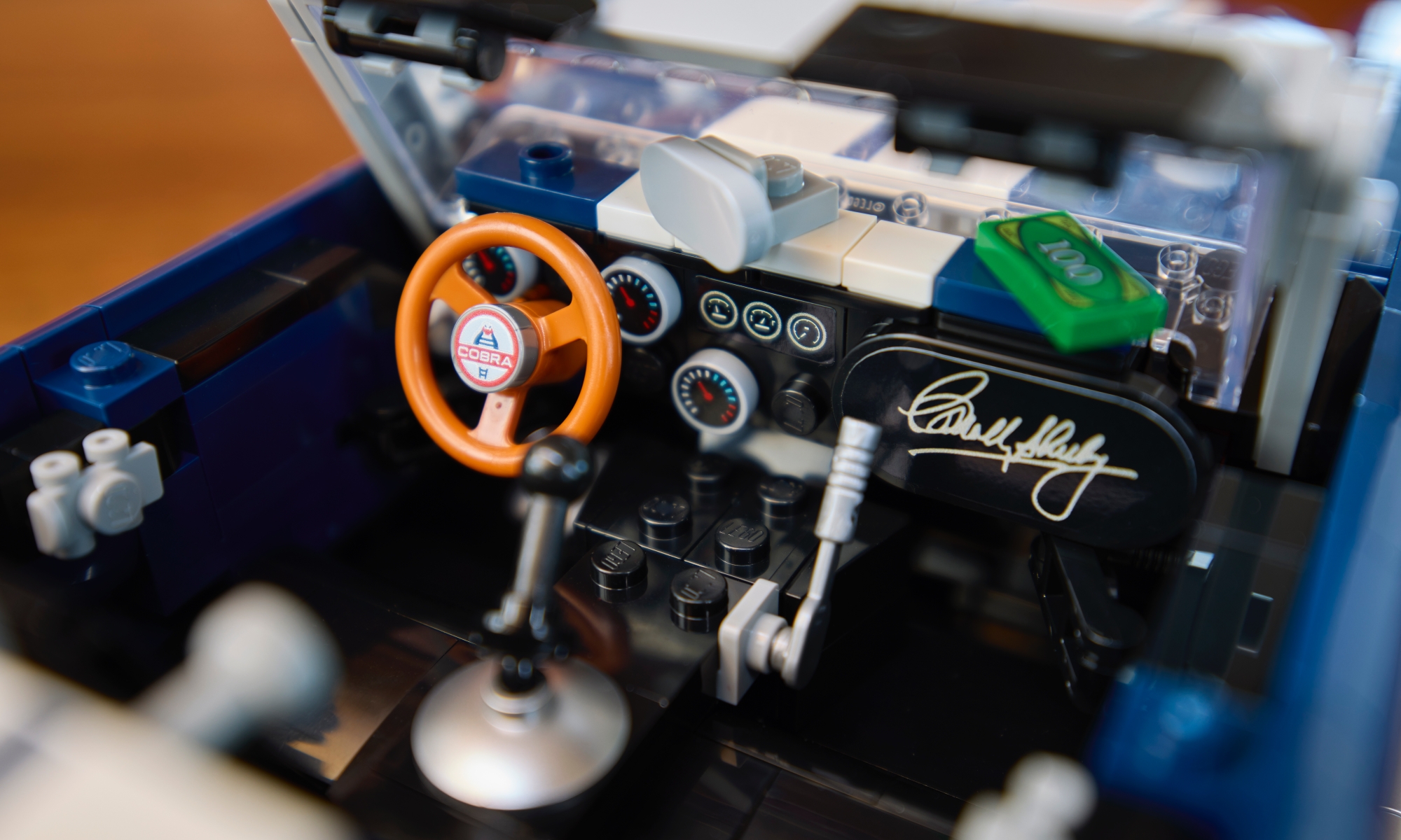 Carroll Shelby aláírása ott díszeleg a Shelby Cobra 427 S/C műszerfalán, és ez csak egy a rengeteg elképesztő részlet közül a Lego Icons szettjén.