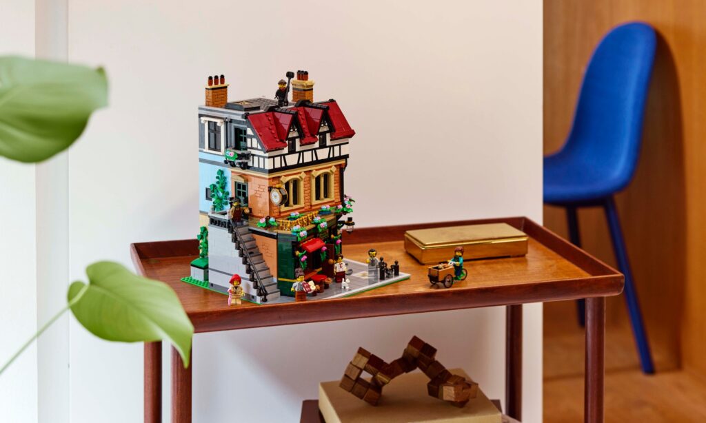 Meredek tetővonalából kibukkanó második emelettel, a szimmetria és aszimmetria párosával játszó felületeivel, valamint a látható fa szerkezetével egyértelműen a Tudor-kori angol városképhez igazodik a Lego Icons moduláris háza, melyben érdekes építési technikák és történetek vannak.