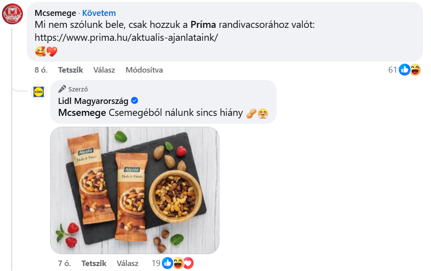 A Lidl eredeti posztja alatt jó néhány cég érezte szükségesnek a kommunikációt. A jobbak közül válogattunk: