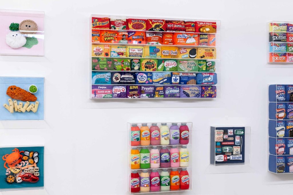 Lucy Sparrow csinált már hasonlót, de a négyszáz termékes kisbolt semmi a mostani kiállításához-szupermarketjéhez képest. A nyolcvanas évek slágertermékeit varrta meg, és pakolta tele a polcokat.