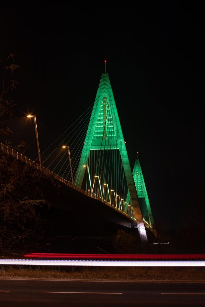 Idén nemcsak karácsonykor, hanem már advent első vasárnapjától zöldbe borul a Megyeri híd két pilonja, amiben december 31-ig gyönyörködhetnek a közlekedők.