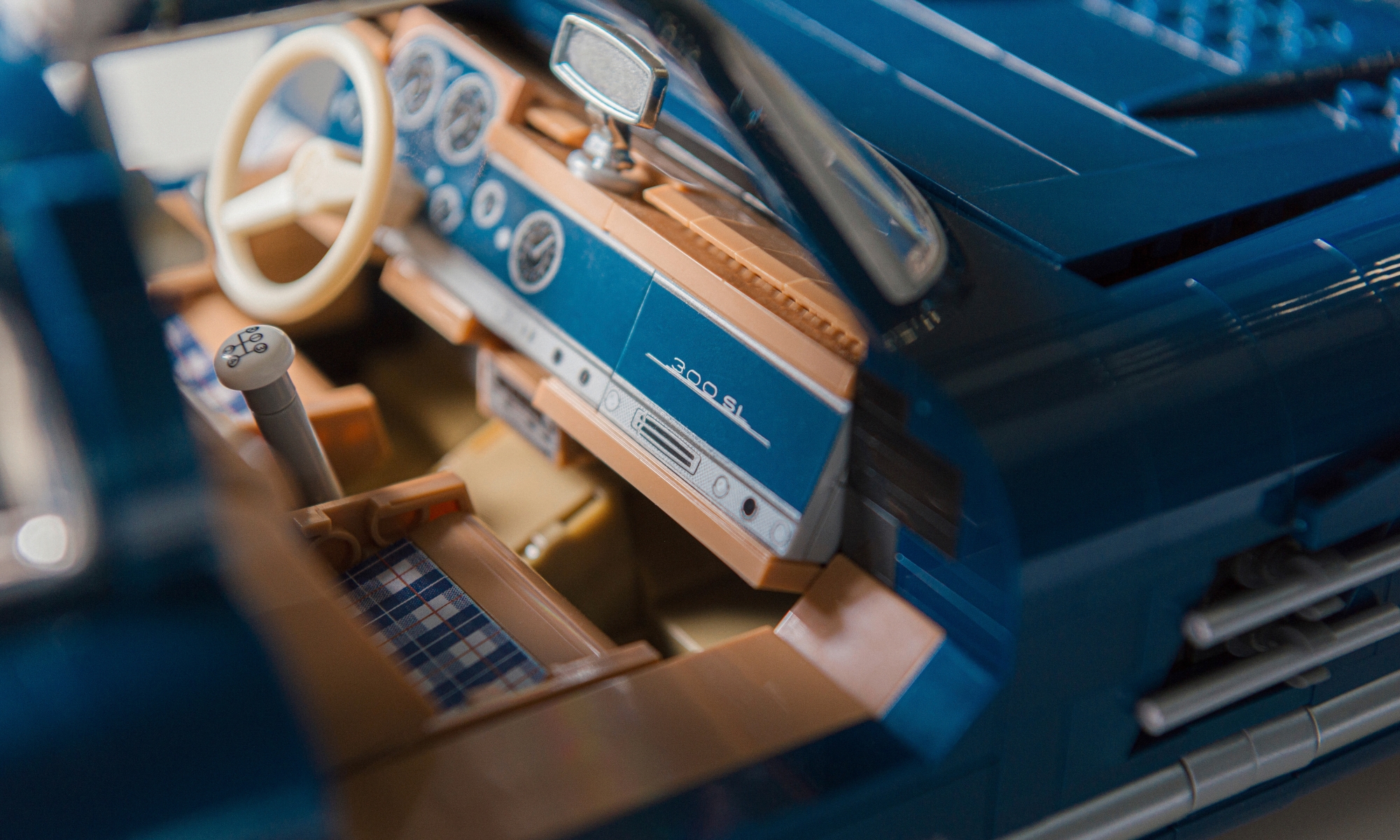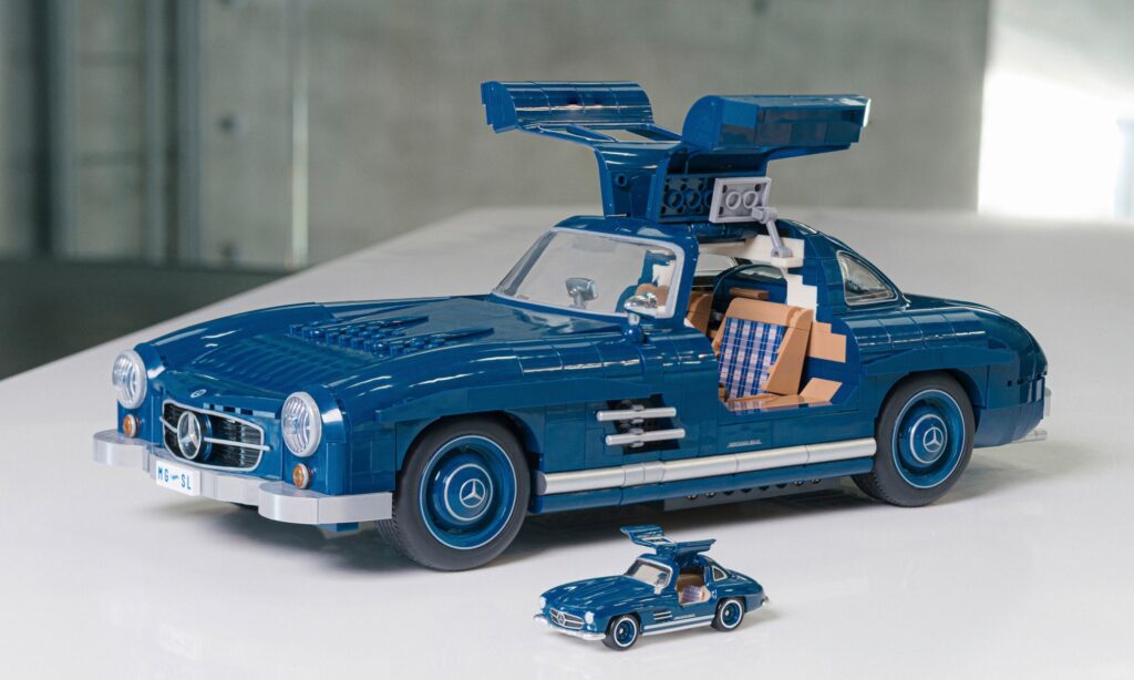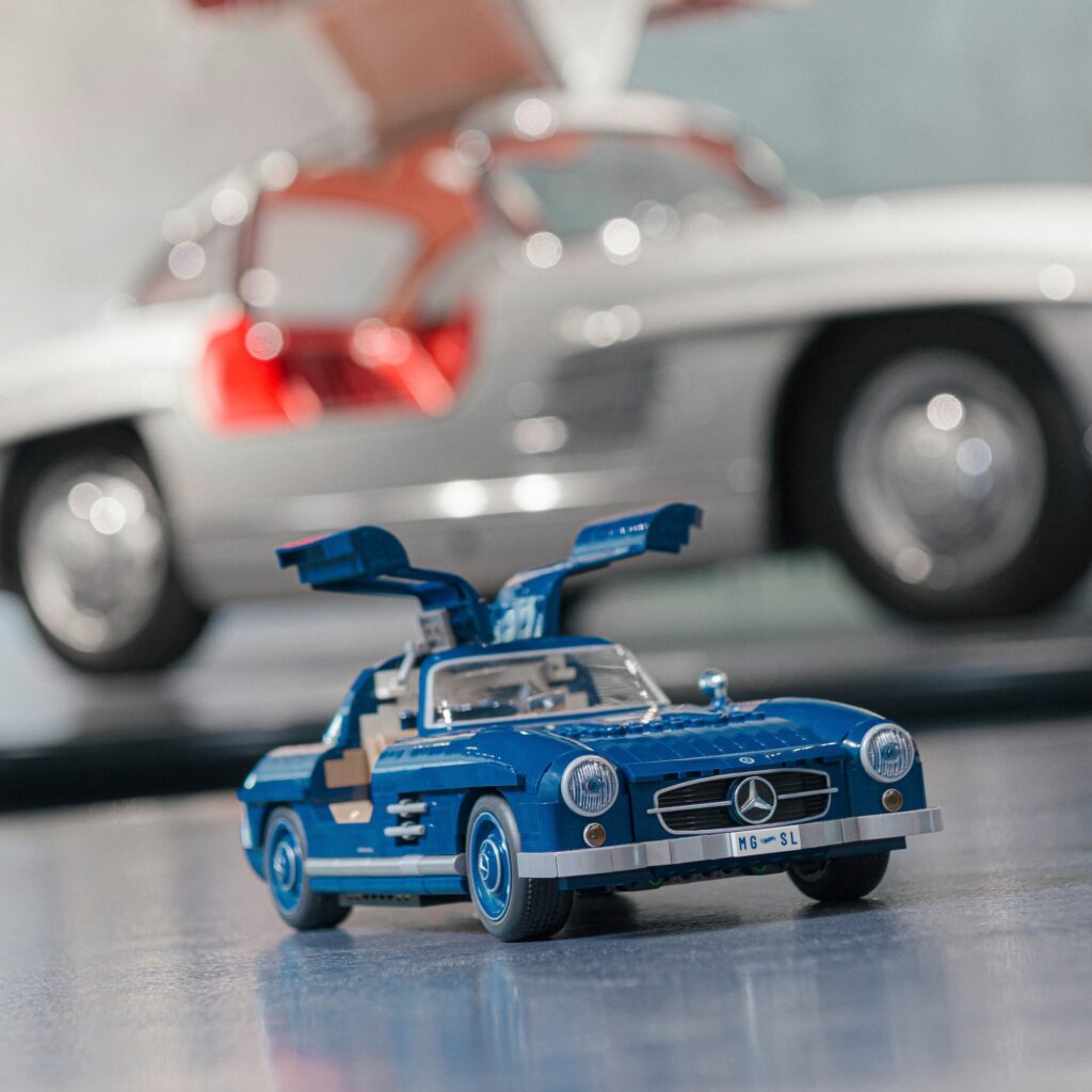 Ahogyan a korábbi Lego Creator Expert Ford Mustang vagy az Icon Land Rover Defender készlet esetében, úgy a Mattel Brick Shop Mercedes 300 SL-jéhez is különböző kiegészítőket terveztek, hogy utcai autóból versenyautóvá lehessen átalakítani az 1600 elemből álló sirályszárnyast. Az 1:12-es méretarányú SL-t 120 eurós áron kínálja a Mattel.