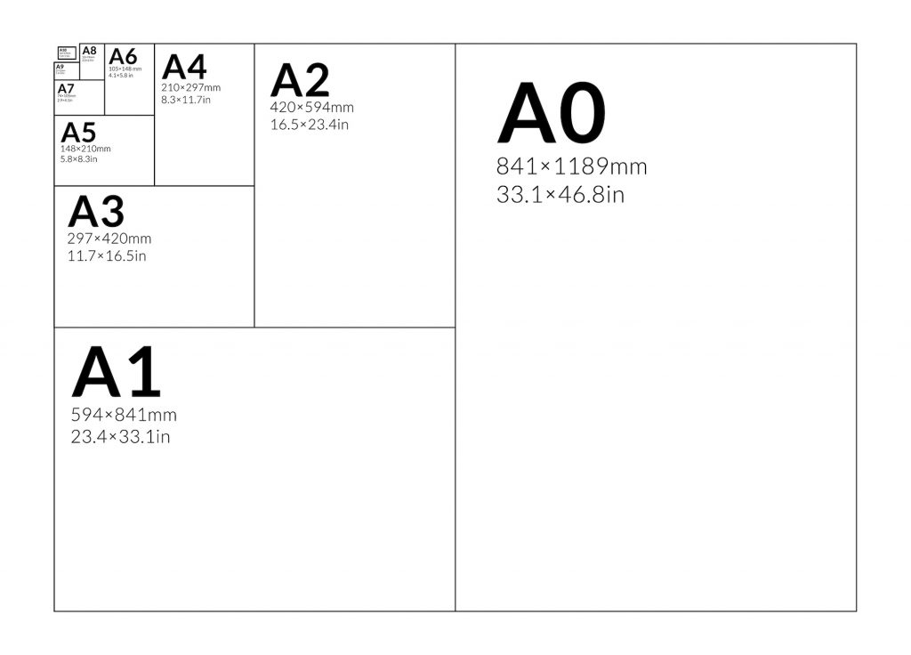 Eljutunk egészen az A0-ásig, ami az A4-es 16-szorosa, és pontosan 1 m², bár nem négyzet alakú.