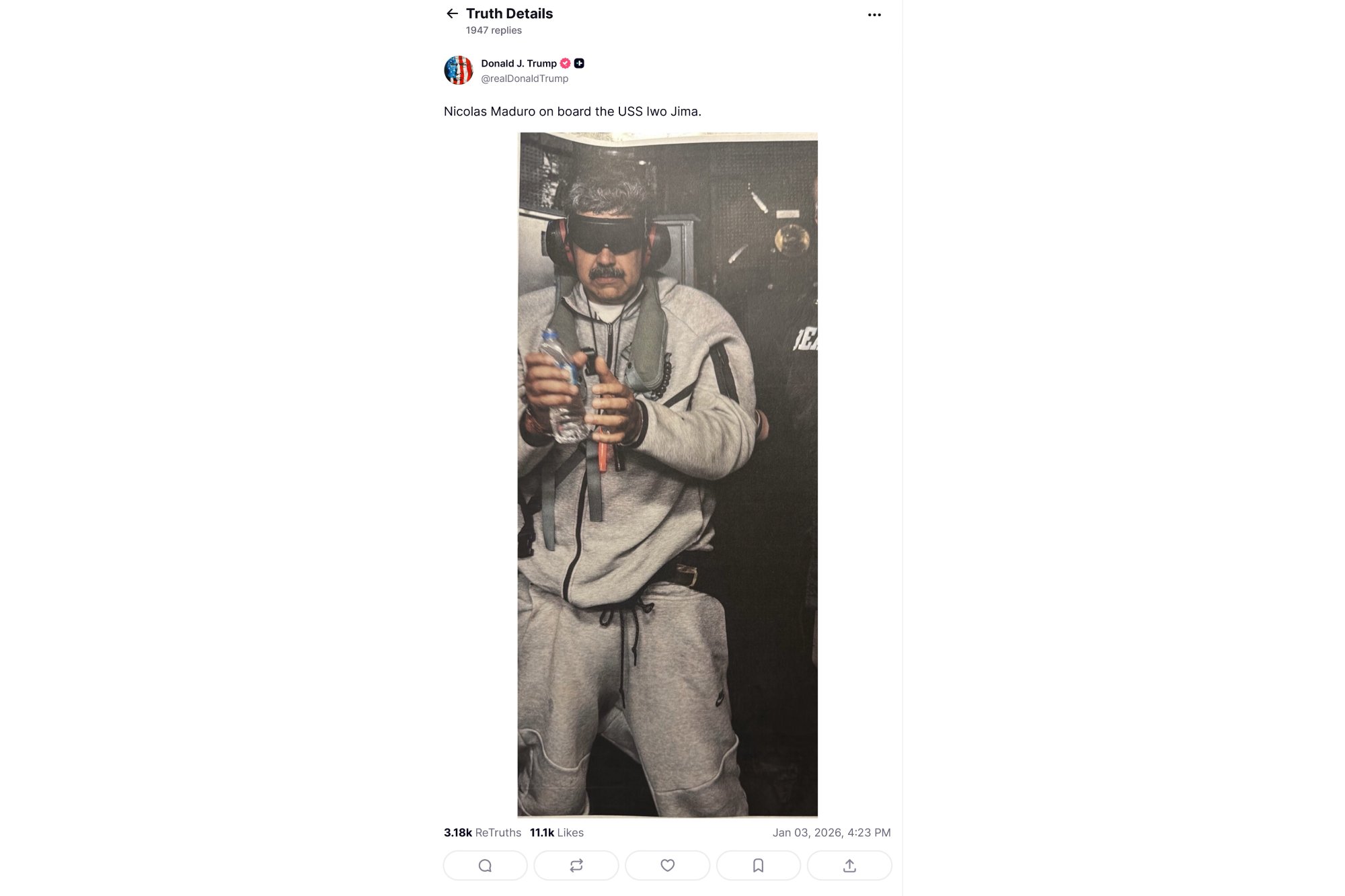 Egyetlen fotó is elég volt ahhoz, hogy valóságos roham induljon a Nike egyik melegítője iránt. Az interneten futótűzként kezdett terjedni egy kép a venezuelai elnökről, Nicolás Maduróról, akit az amerikai erők vettek őrizetbe még szombat hajnalban: bekötött szemmel, megbilincselve áll az USS Iwo Jima nevű amerikai hadihajó fedélzetén szürke Nike Tech Fleece szettben. A fotót ráadásul maga Donald Trump amerikai elnök osztotta meg, ami nyilvánvalóan csak tovább erősítette a hatását.