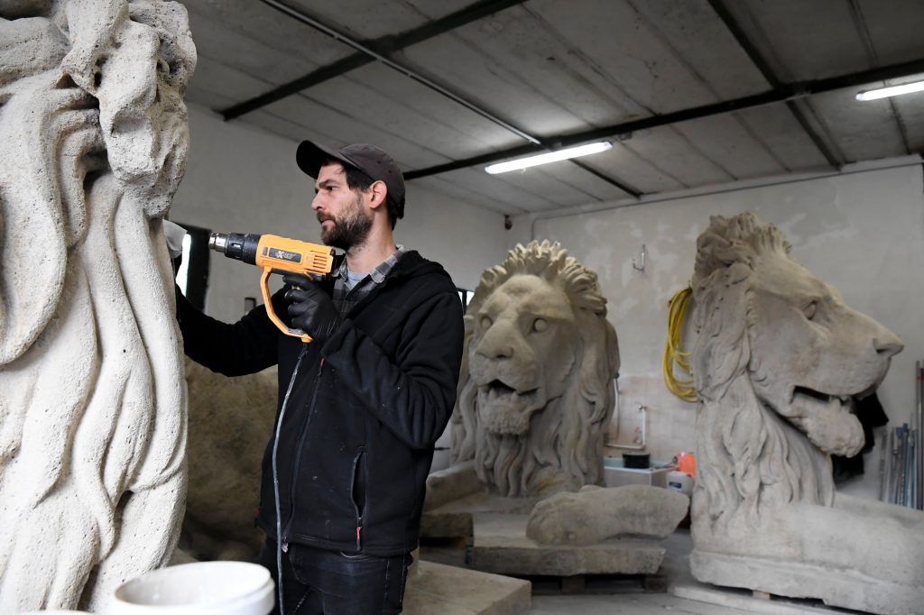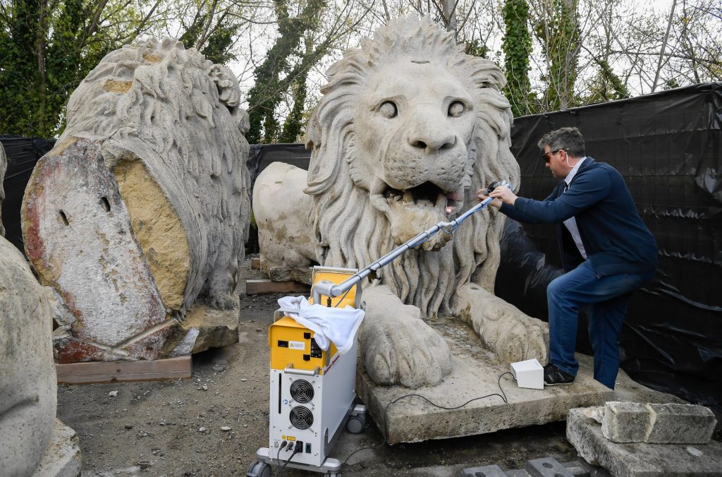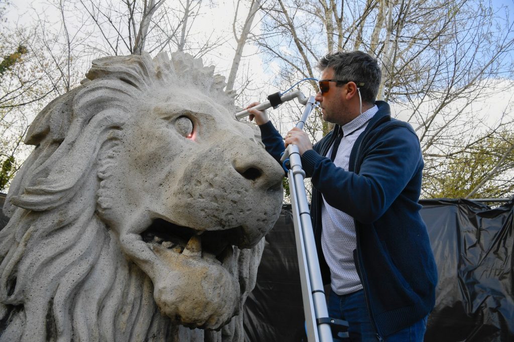 Nekiláttak a budai oroszlánok restaurálásához is. Megtisztították és fertőtlenítették a szobrokat, a hibák aprólékos feltárása ugyanakkor még nem ért véget. Miközben felmérik, milyen állapotban vannak a Lánchíd budai oroszlánjai, megvizsgálják, hogy a szobrok hol tartalmaznak idegen anyagot, kőbetétet vagy egyéb korábbi pótlásokat, elkezdték eltávolítani a legmakacsabb szennyeződéseket.