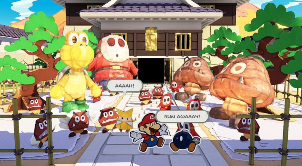 Ezúttal a tematika a címből adódóan az origami, a világ pedig kinyílt, majdhogynem open world lett, persze lezárt és folyamatosan feloldható részekkel. Ez egyáltalán nem áll rosszul a játéknak. Az viszont már erősen megosztó, amit a harcrendszerrel művelt az Intelligent Systems. Mario és ellenfelei ugyanis egy kör alakú arénában küzdenek meg egymással, ahol az a dolgunk, hogy egymáshoz terelgessük az ellenfeleinket, hogy egy erős támadást vihessünk be. Ez az elején még szórakoztató, de később unalmasabbá válik, persze aki bírja a monotóniát, annak ez nem lehet probléma.