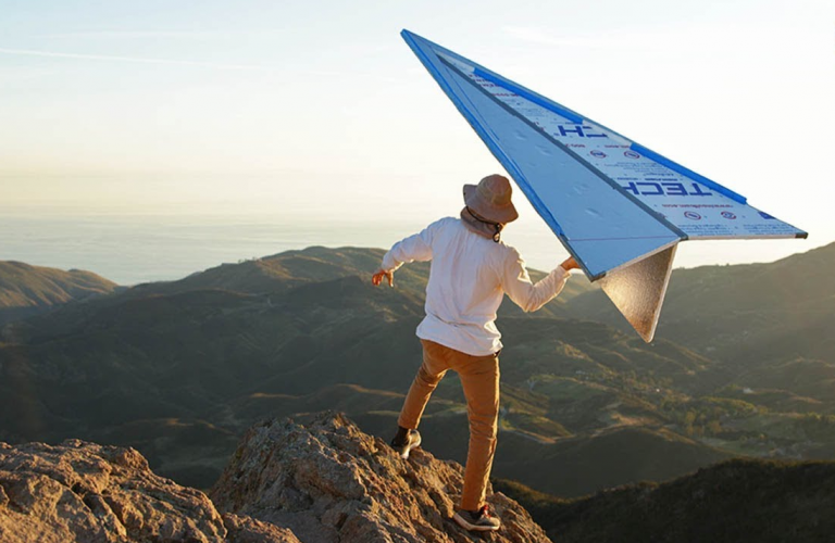 A használt nyomtatóból készített papírrepülő-hajtogató gép vezetett el minket az Emberhez, aki elkészítette a világ első vállról indítható automata papírrepülő-vetőjét.