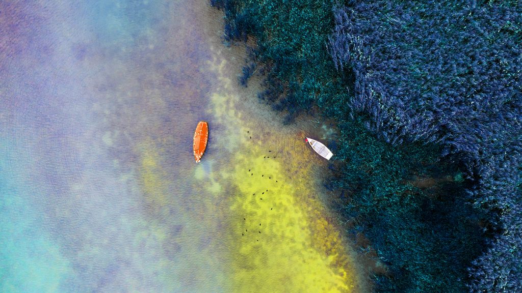Szabó Viktor fotós eleinte egy hagyományosnak mondható, drónfotós projektet szeretett volna balatoni fotózása kapcsán, de az utómunka során elkalandozott, milyen lenne, ha egy kicsit belenyúlna a természet egyensúlyába, és elengedné azt a fix pontot, hogy a víz az kék.