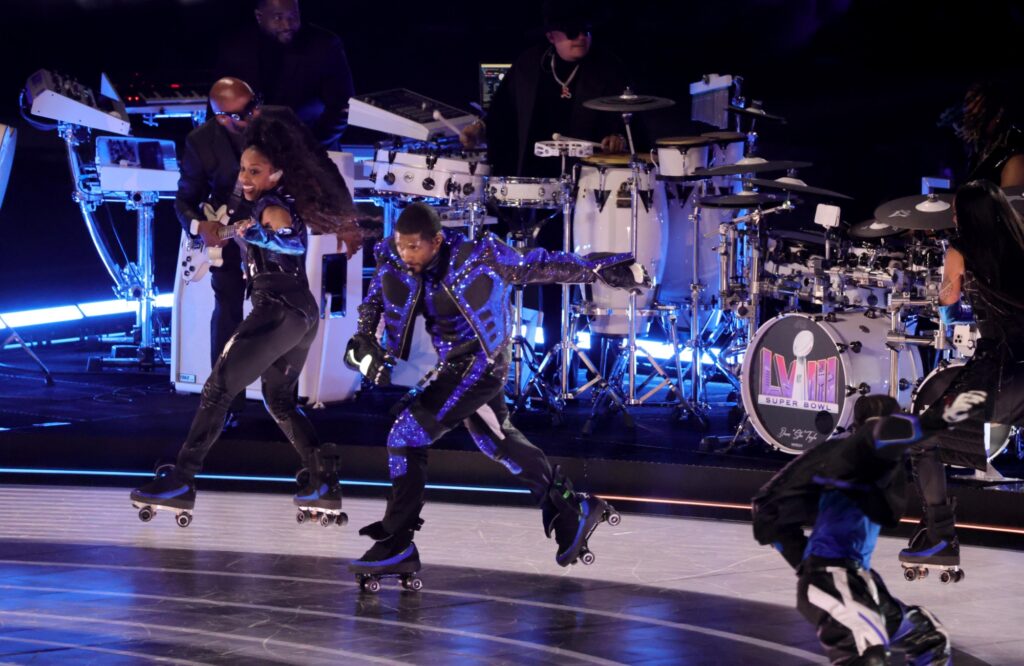 Alicia Keys és Usher:Usher performs on skates during his #SuperBowl Halftime Show pic.twitter.com/NfvnPRIMo0