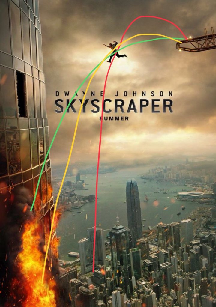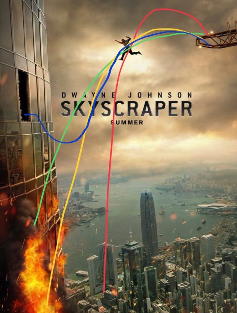 Nem kell fizikusnak lenni ahhoz, hogy belássuk, a Szikla egészen egyszerűen nem is lehetne ott, vagy ha mégis, kizárt, hogy szárnyak nélkül sikerüljön neki megmenekülni ebből a szituból. A Twitter fel is robbant, ahogy ilyenkor szokás. A legalaposabb felhasználó még vizualizálta is Johnson ugrásának lehetséges nyomvonalait: