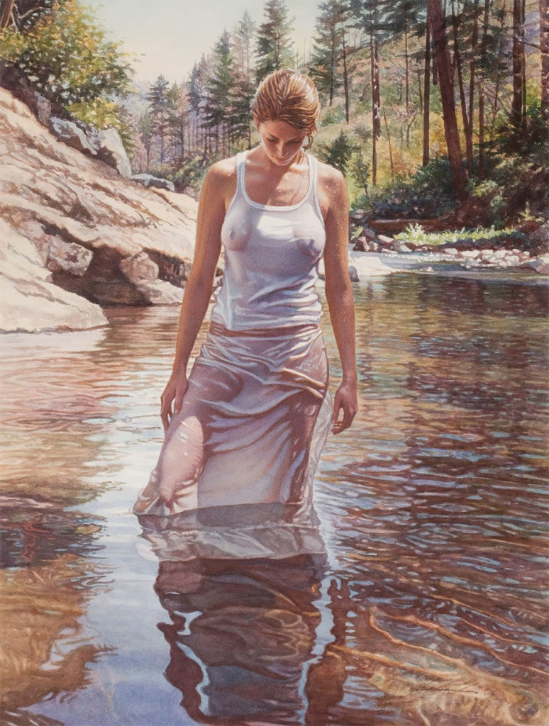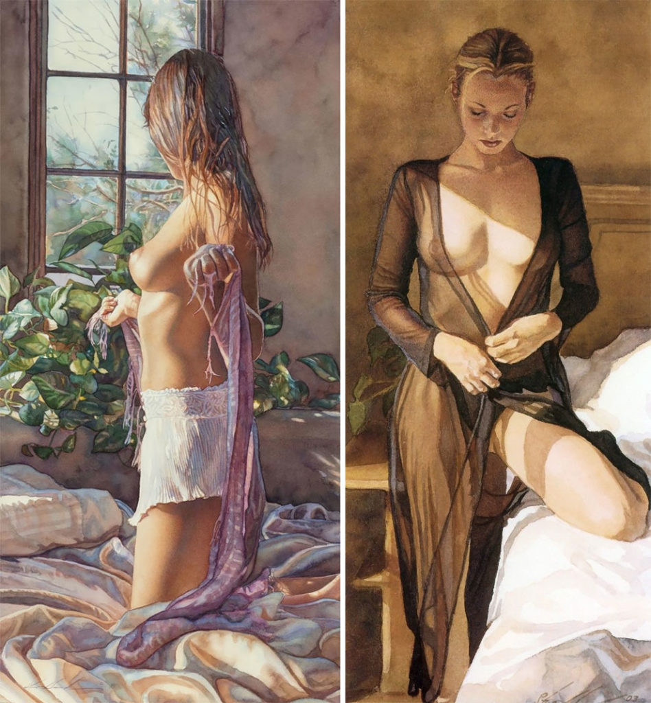 Steve Hanks úgy használja a vízfestéket, ahogy nem sokan ezen a világon. Festményei az alkalmazott technikát tekintve megdöbbentően realisztikusak, és úgy ábrázolják a női testet, hogy ha valaki most átpillantana a vállad fölött, azt hinné, valami művészien erotikus fotógyűjteményt böngészel éppen.