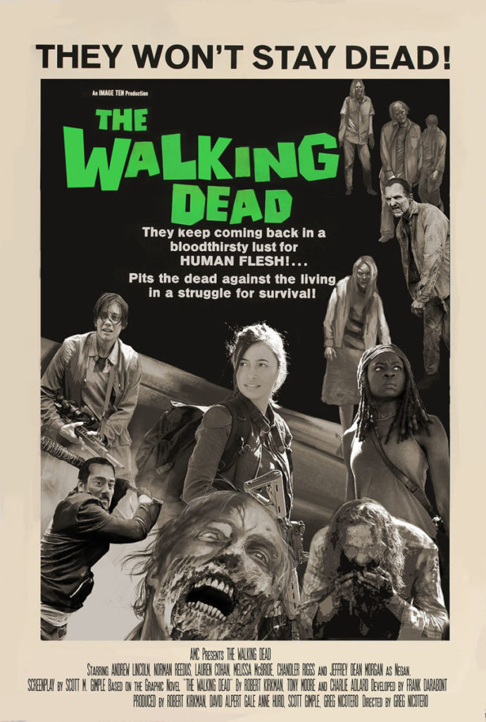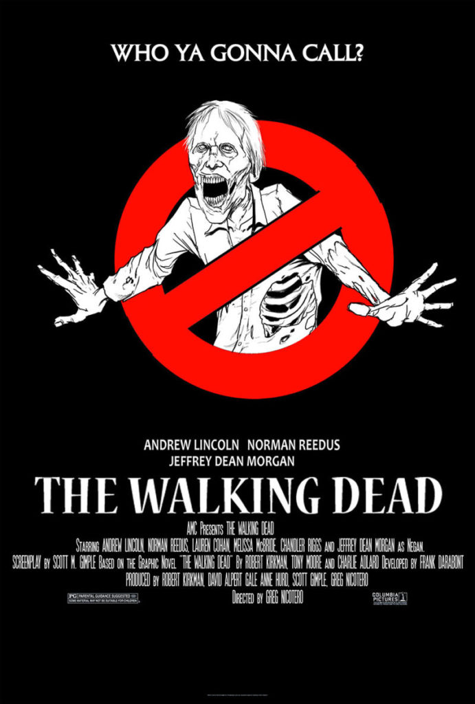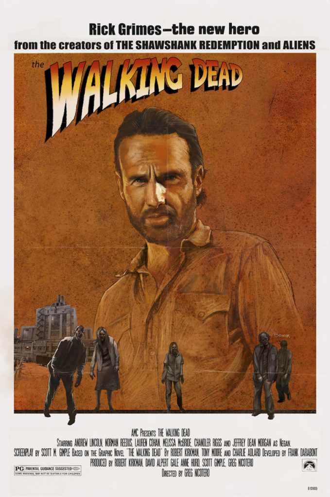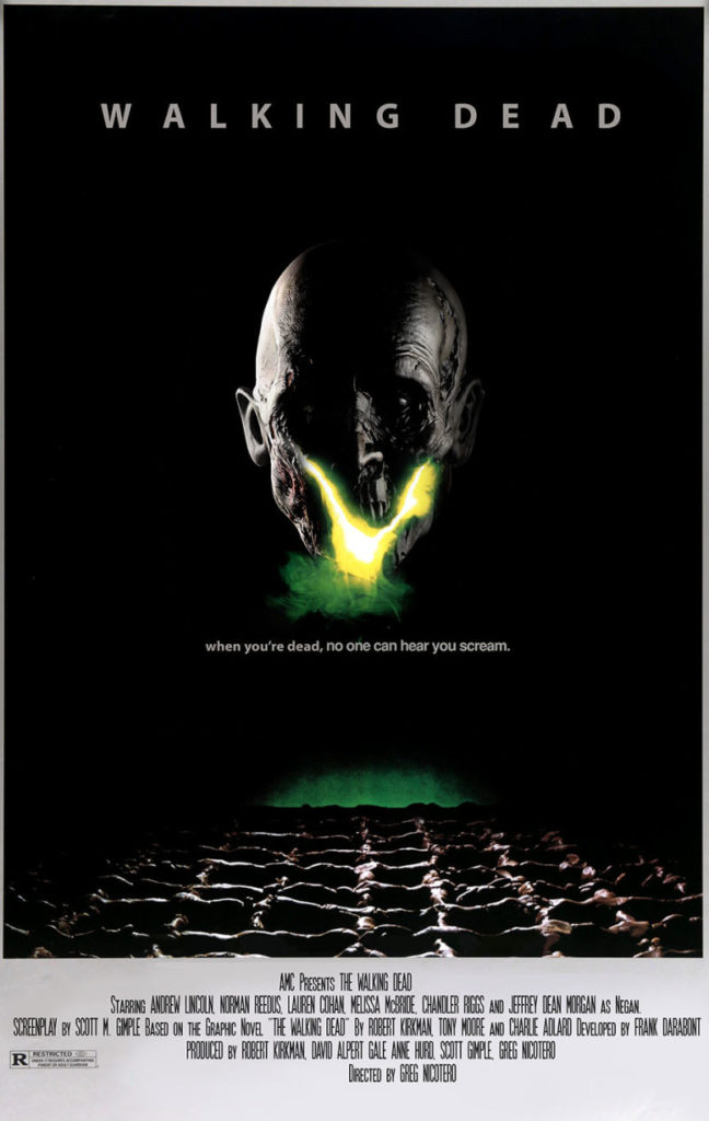 A The Walking Dead egyik producere, Greg Nicotero nagyon nincs kibékülve azzal, hogy sorozatok csak ritkán kapnak falra ragasztható posztereket, ezért megkérte két kollégáját a KNB nevű effektes cégnél, hogy koppintsanak le néhány híres filmplakátot. Ez itt az eredmény.
