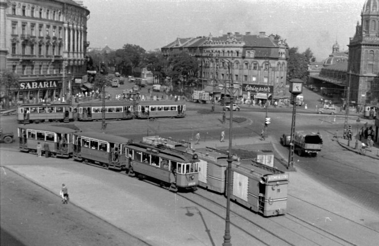 Ez az akkori Marx, mai Nyugati téri, szemben a Westend-ház 1955-ben (fotó: Fortepan/Magyar Rendőr)