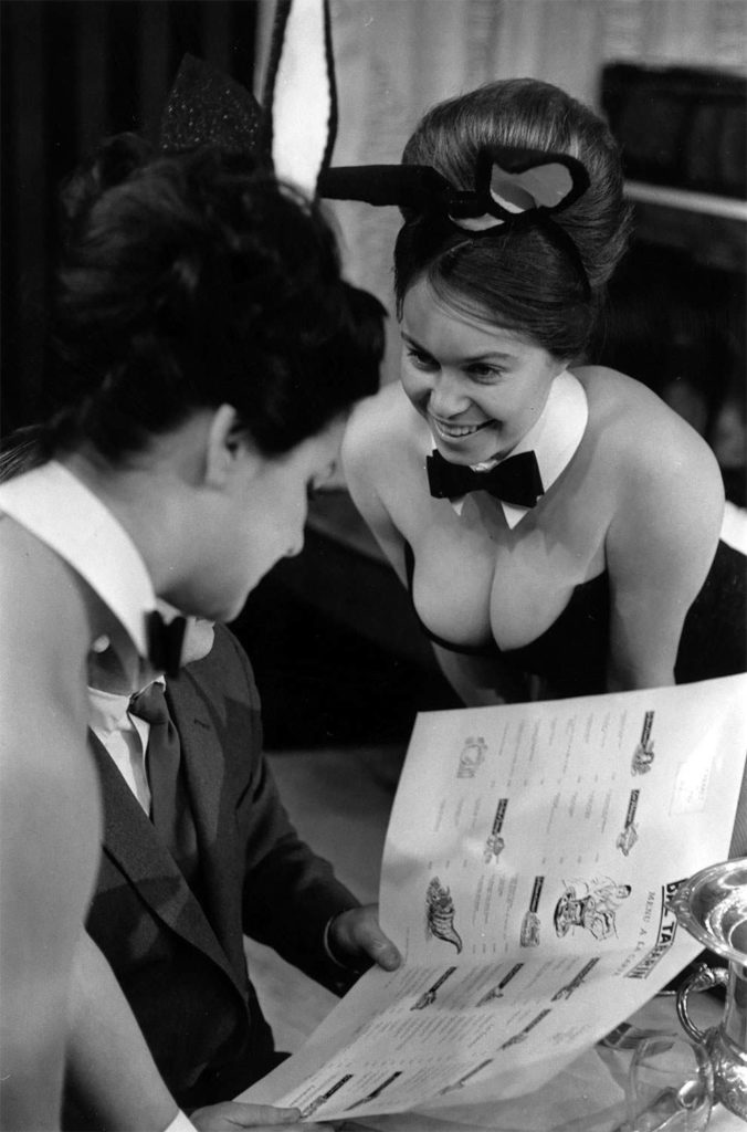 Egy nyuszi épp a rendelést veszi fel a magazin egyik londoni éttermében 1963 februárjában
