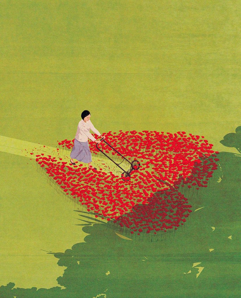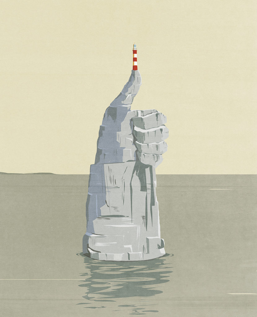 Andrea Ucini grafikái egészen egyszerűek: néhány vonal, kevés szín, de így is – vagy éppen ezért – néha mellbevágó a mondanivalójuk.