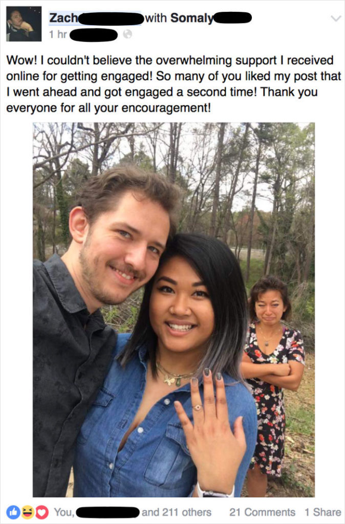 Ismerős, hogy csak görgetsz és görgetsz az idővonaladon, aztán lájkolod, ami szembejön? Zach ismerősei is így tettek, pedig a srác néhány órán belül több eljegyzési fotót is posztolt. Különböző személyekkel.
