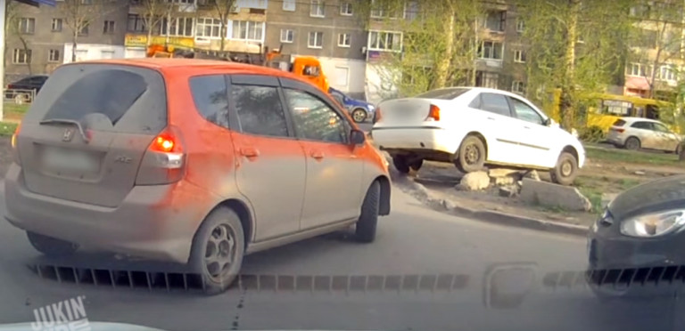Rövidíteni akart a fordos orosz, de a betondarabok megakasztották a kocsit. Nem hagyta magát, és végül felülkerekedett – de ebből lett csak az igazi baj.