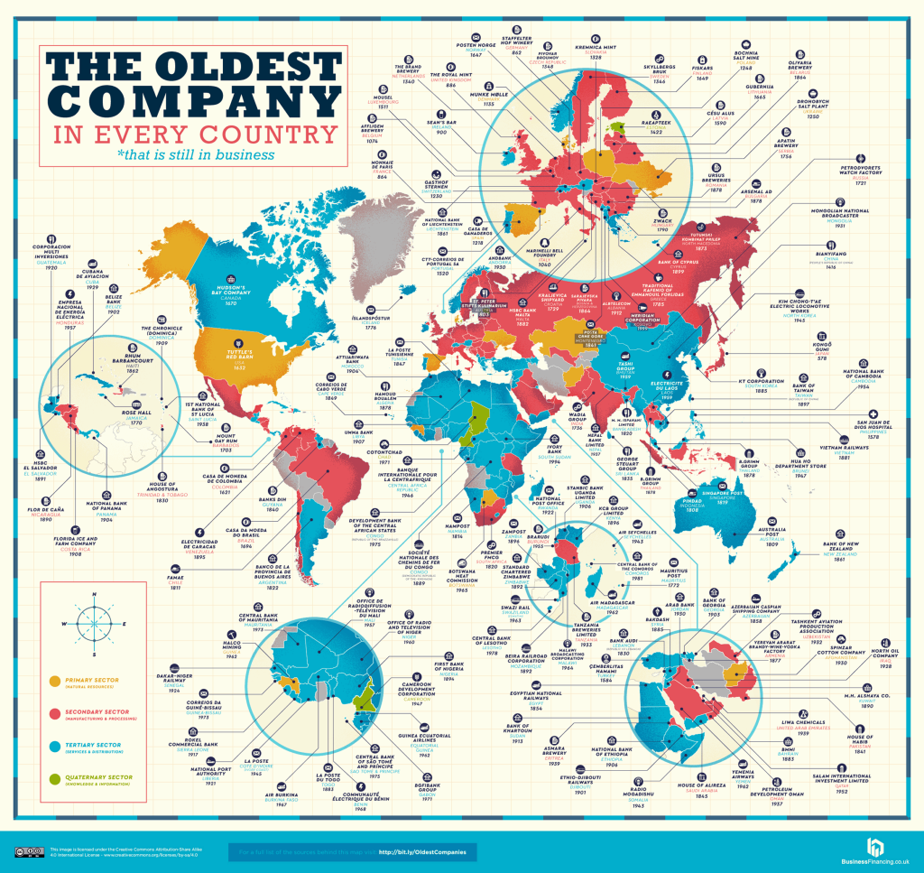 A Business Financing összeszedte a világ országainak legrégebbi vállalatait, melyek ma is működnek. Magyarországét meg tudod tippelni?