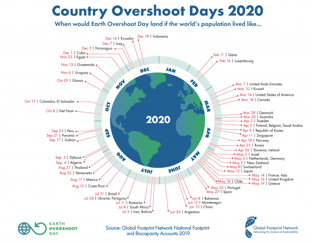 Az emberiség jelenleg 1,6-szor gyorsabban használja fel a bolygó erőforrásait, mint ahogy az ökoszisztémák regenerálódni képesek, vagyis úgy élünk, mintha 1,6 Föld állna rendelkezésünkre.