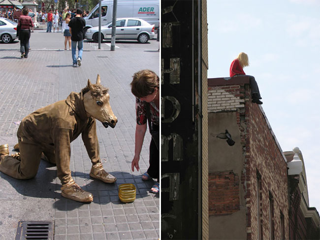 Mark Jenkinsnek különleges tehetsége van ahhoz, hogy zavarba hozza a járókelőket, sőt, olyanra is volt példa, hogy valaki kihívta miatta a rendőrséget, ami elnézegetve az installációit, egyáltalán nem meglepő. A falba szorult fejű pisáló pali csak a kezdet.