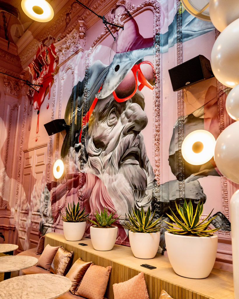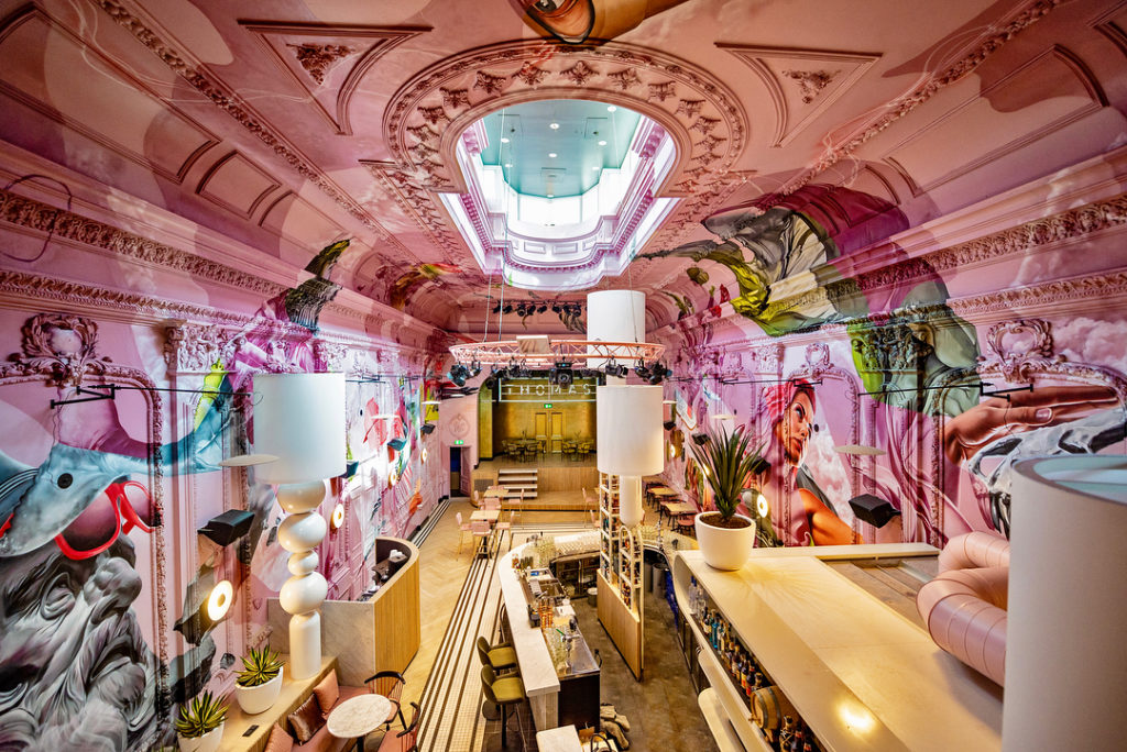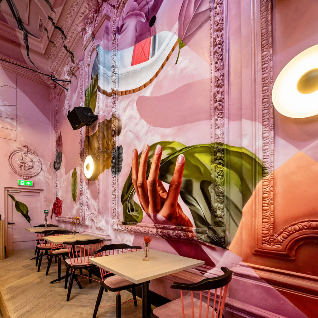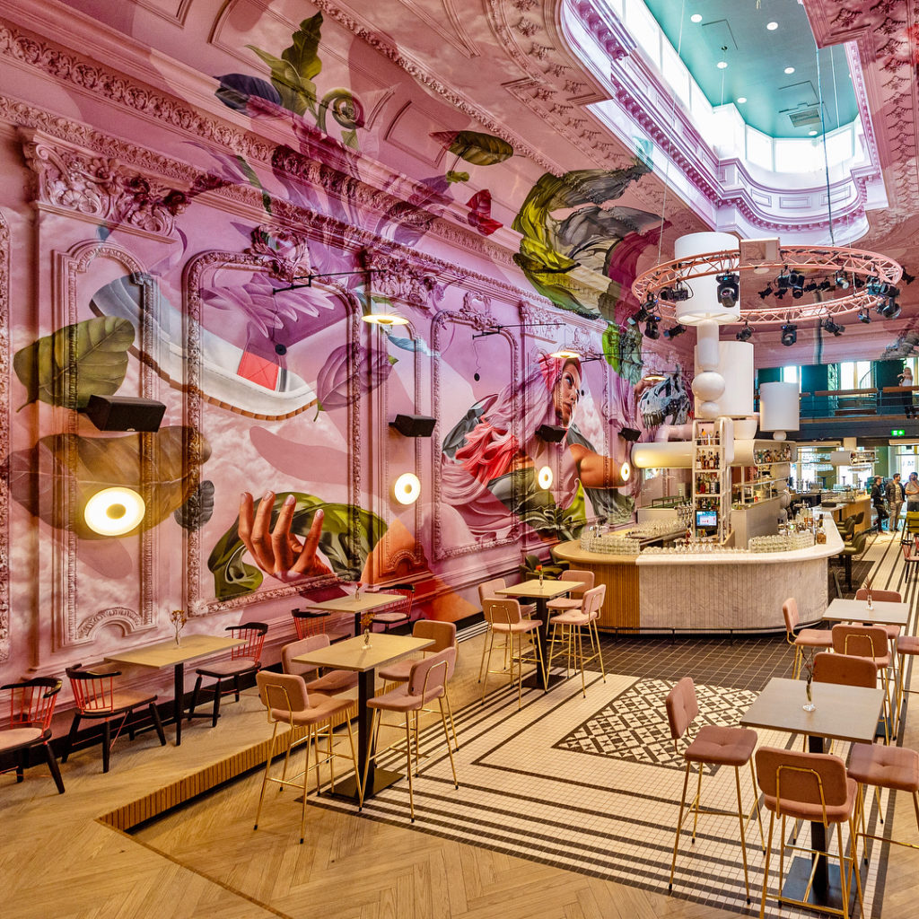 A város egyik jól ismert tervezőirodája, a street arttal is foglalkozó Studio Giftig szakemberei fáradhatatlanul azon dolgoztak, hogy egy hatalmas festményt jelenítsenek meg a falon festékspray-vel. A projektben Niels van Swaemen és Kaspar van Leek dolgozott heteken át, mindkét alkotó realisztikus, részletgazdag festményeiről ismert. A gigantikus szürrealista jelenet 600 négyzetméteres lett, így lefedi az összes falat, beleértve a mennyezetet is.