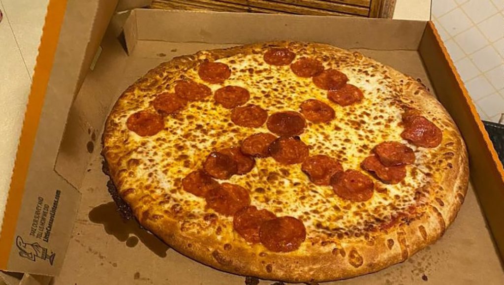 Az ohiói Jason Laska hazafelé tartott az anyósától, gondolta, csodás ötlet felmarkolni a Little Caesars pizzérialáncból egy kis kaját, felmarkolt hát egy Hot-N-Ready előre elkészített szalámis pizzát, hazavitte, felpattintotta a doboztetőt, majd ő és a felesége egyből dobtak egy hátast, mert maradjunk annyiban, hogy a feltét elhelyezése meglehetősen kreatívra sikeredett.