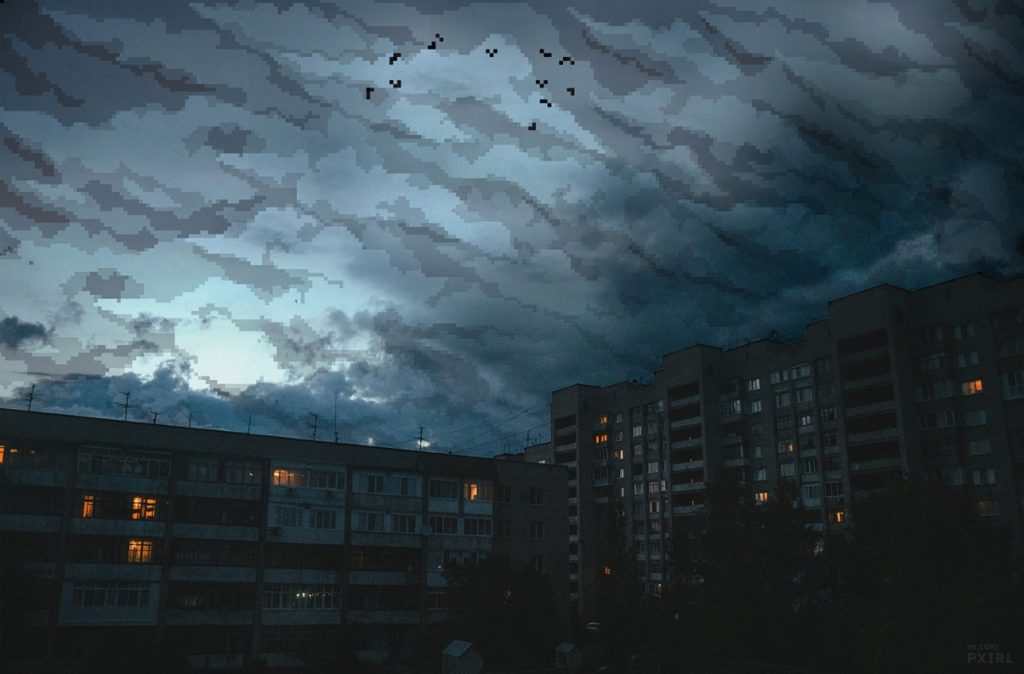 Dmitrij Safrov ötlete rendkívül egyszerű, mégis lenyűgöző: fogott egy halom orosz városokról készült fotót, és az eget kicserélte a régi videojátékokat idéző, 8-bites égboltra.