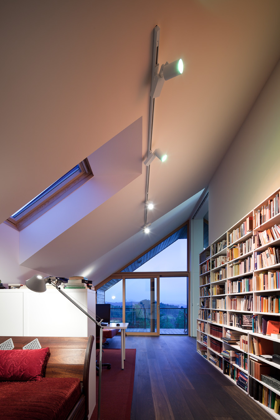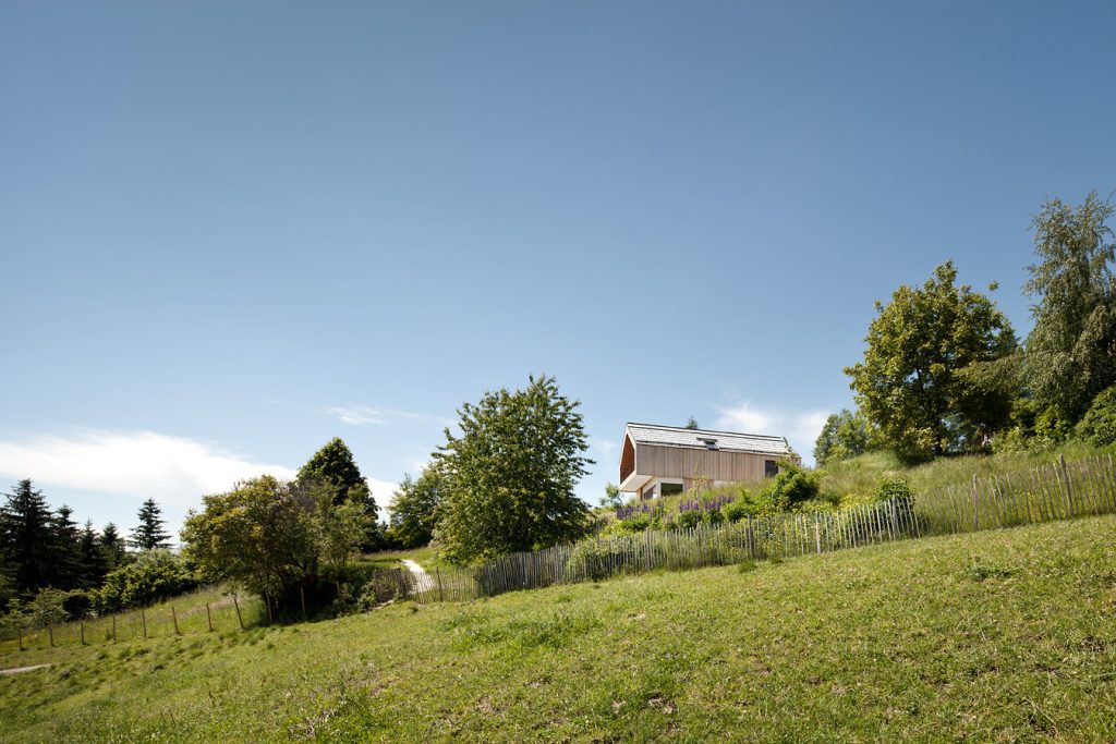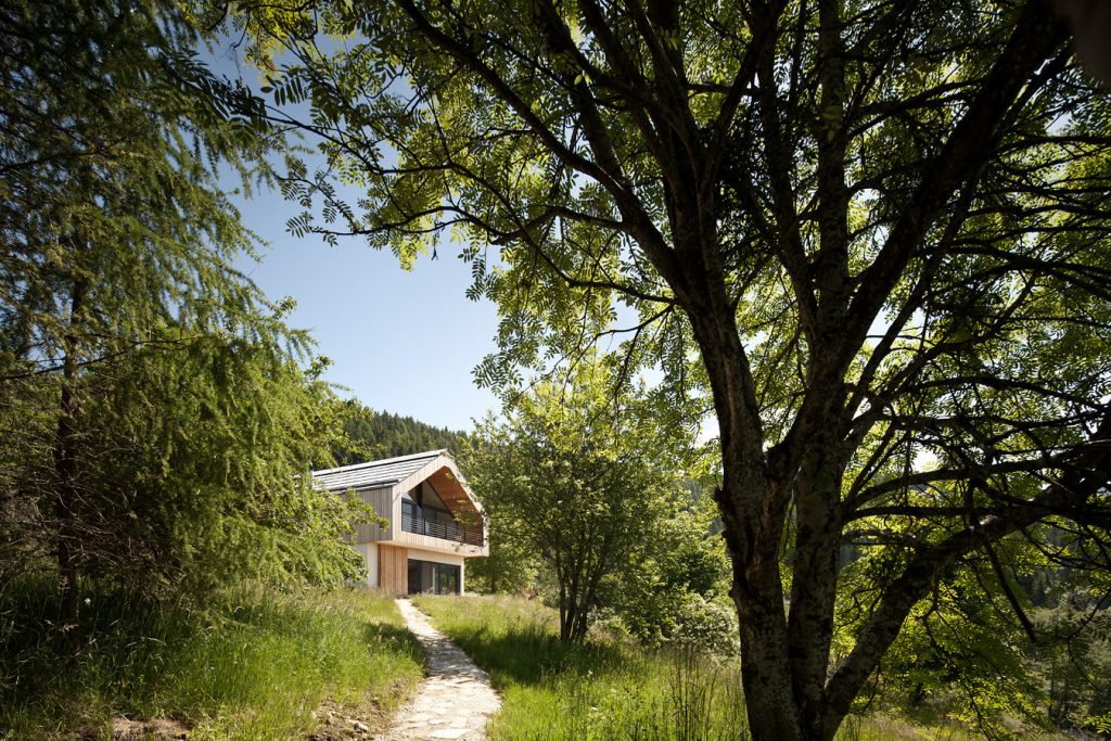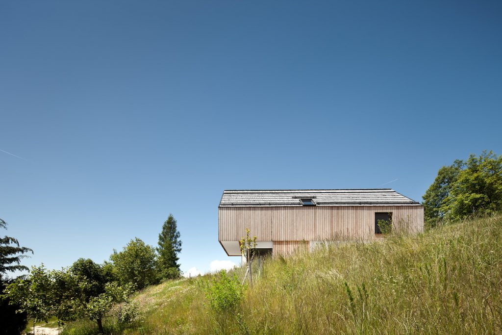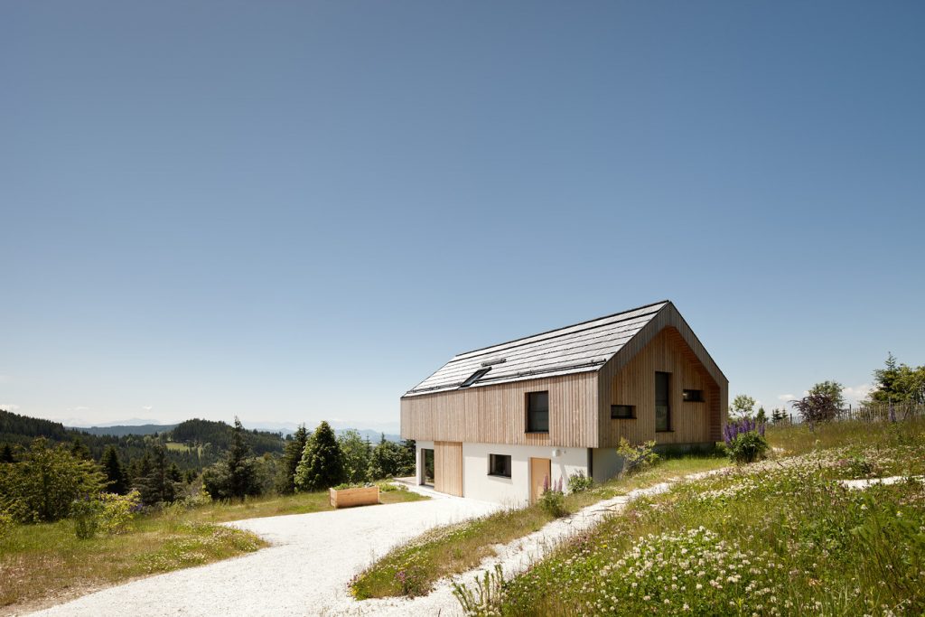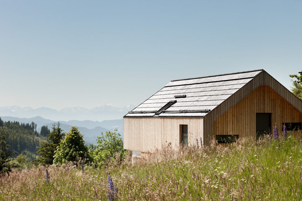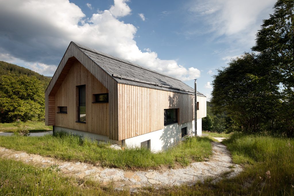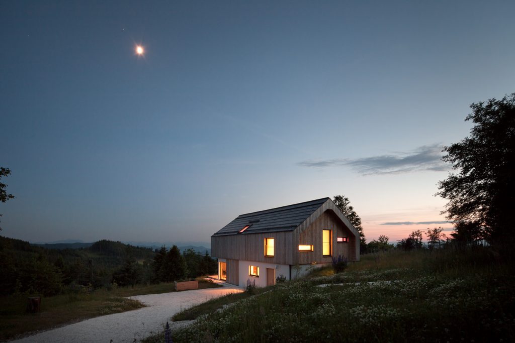 A 161 négyzetméteres ház a csodás Karintiában épült; faburkolata a pajtaházakat idézi, így teljes harmóniában olvad bele fás-rétes-hegyes-dombos környezetébe. Belül viszont már megjelennek a nem tradicionális belsőépítészeti húzások: modern bútorok, geometrikus terek, vagány polcsorok és egy olyan terasz egy olyan kilátással, aminél nem kell több.