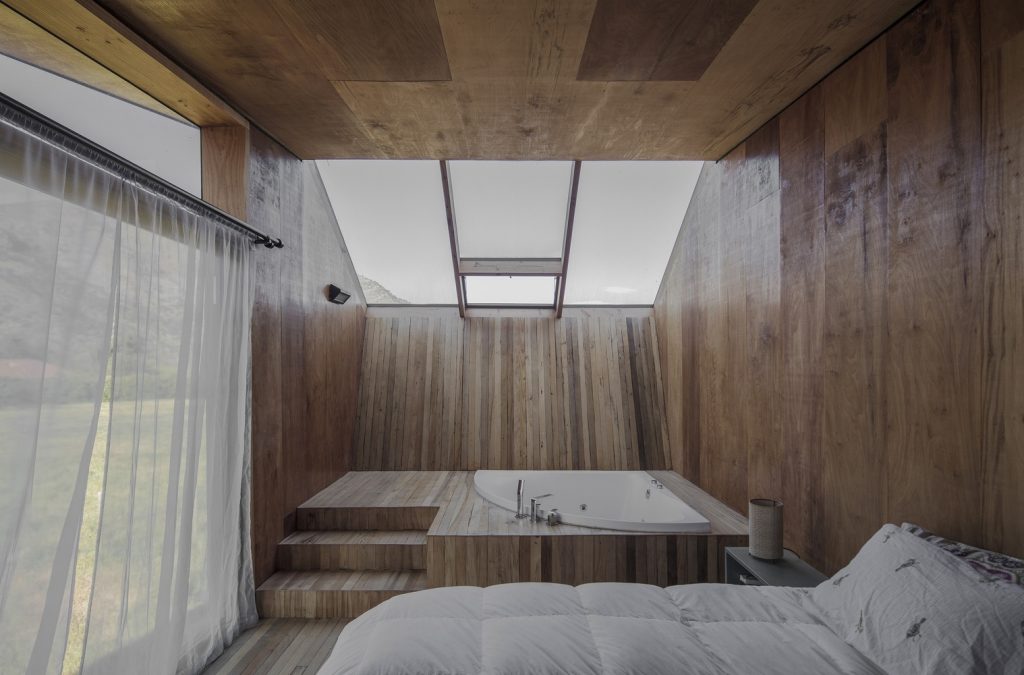 Az egész ház mindössze 60 négyzetméteres, amit nehéz elhinni: sokkal nagyobbnak tűnik, akárhonnan is nézzük. A zárt és nyitott terek játéka nagyon ügyes: egyszerre intim és kitárulkozó a chilei ház. Plusz imádjuk a hálóba tett kádrészt is: jó lehet itt nap végén venni egy fürdőt.