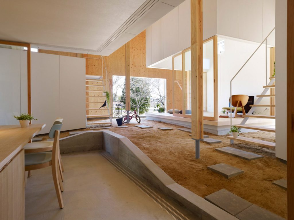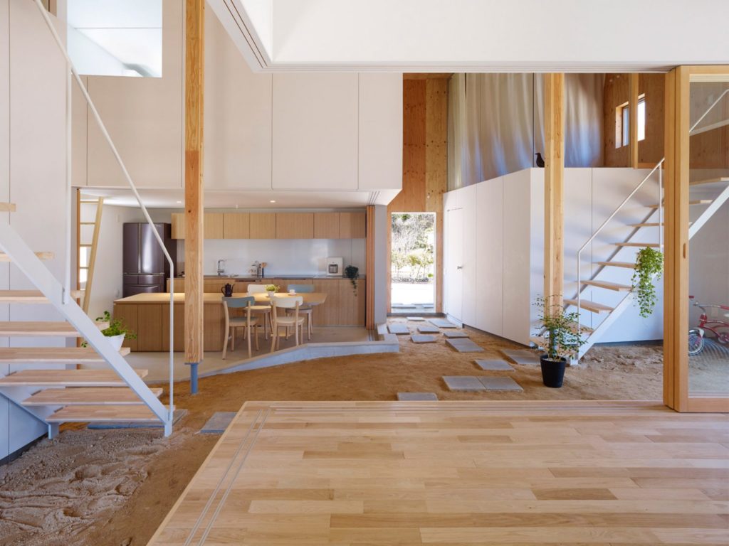 Takajában építették ezt a kívülről meglepően semmilyen házat, ami belül igazi japánosan egyszerű dizájn tartogat, a természet elemeivel harmóniában, egyszerre modernen és hagyományosan. A nappaliba vitt homok a „doma” nevű koncepciót követi, mely eredetileg a házak bejáratánál a küszöb és ajtó közt gyűlő por neve volt, majd tűzhelyeket és konyhákat is körülöleltek porral, homokkal. Fantasztikusan néz ki, akármennyi lehet is a nyűg vele.