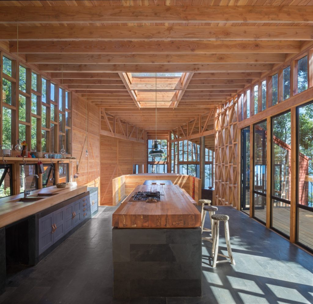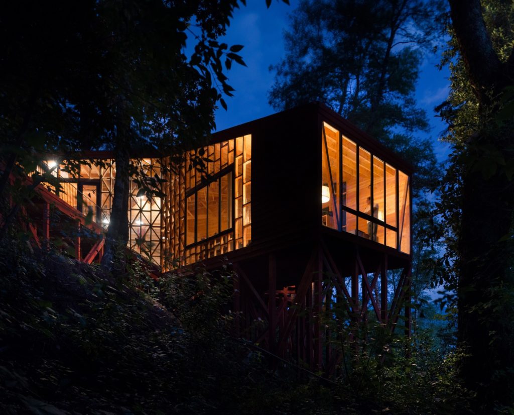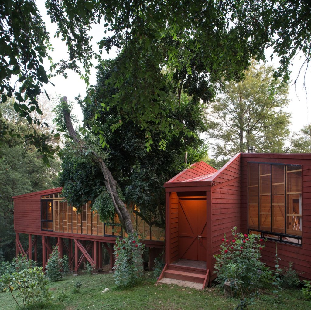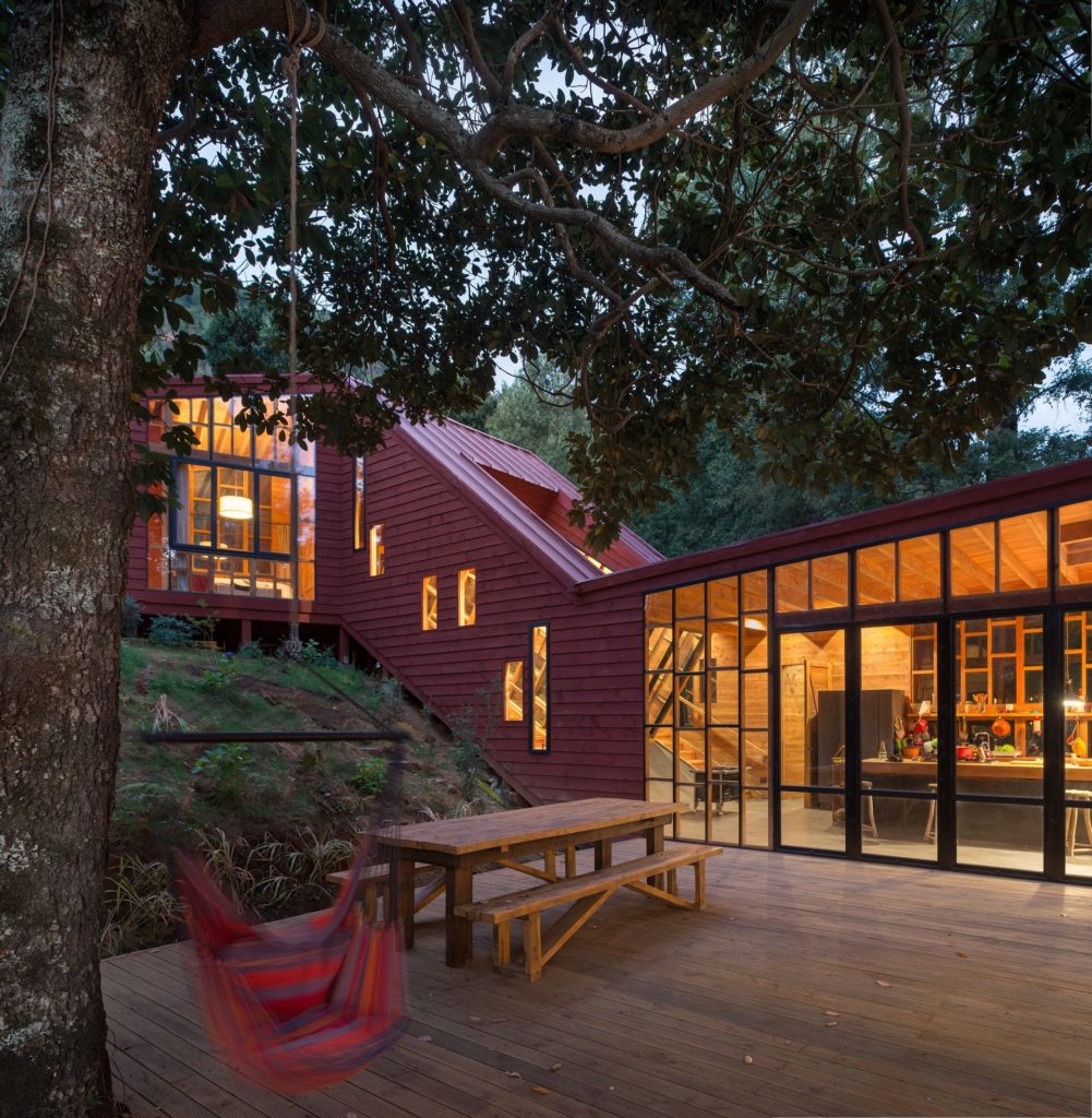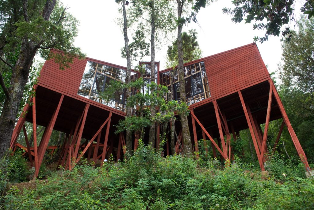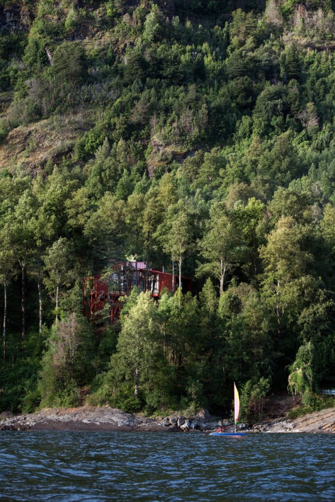 Cólico-ban, Chilében építették a fák közé, a környező természet teljes békénhagyásával ezt a pazar és roppant eredeti házat. A 350 négyzetméteres épület tökéletesen követi az erdős domboldal lépcsőzetességét, üvegfalainak köszönhetően pedig akárhol is van a Nap, mindig besüt a házba.