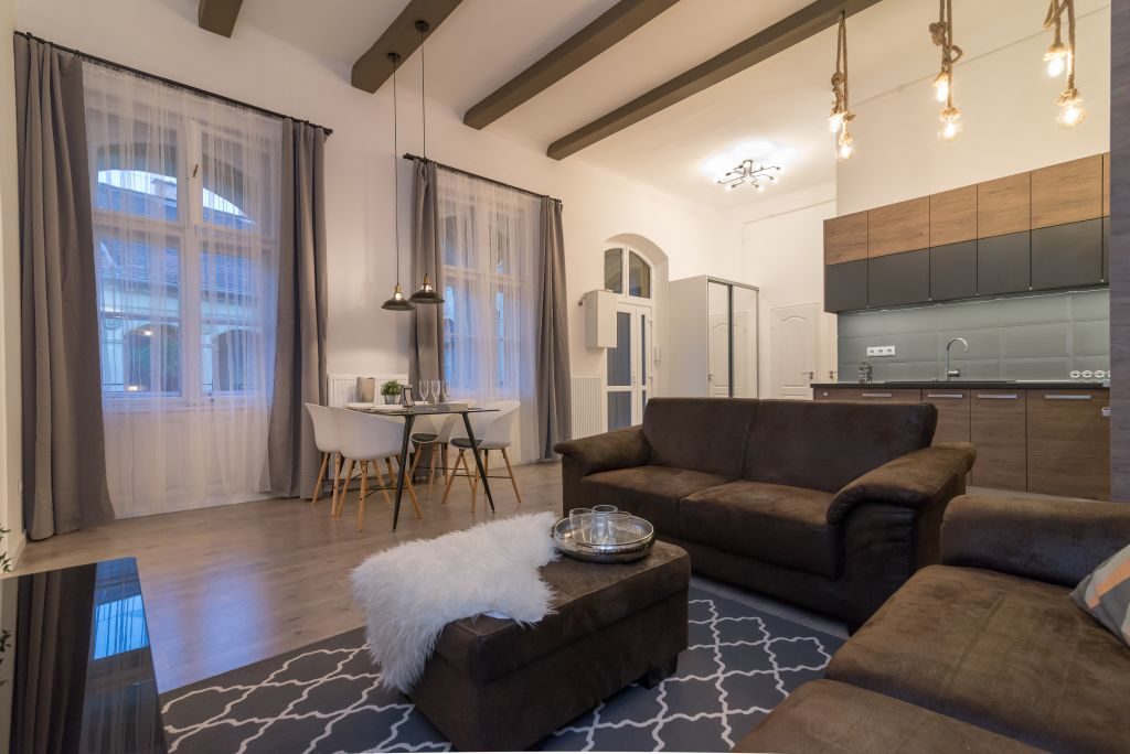 A lakás egy csodálatos, körgangos épületben van Budapesten, a Ráday utca sétálóutcás részén; az épületet nagyon szépen rendben is tartják, azonban a gang miatt kevésbé fényes maga a lakás: ezt rengeteg elrejtett lámpával és kreatív világításrendszerekkel orvosolták. A bútorozásnál pedig a mai trendek, az élhetőség, az esztétikum, a jól belakható terek és a látványos, valamint minimalista elemek keverése volt a cél.