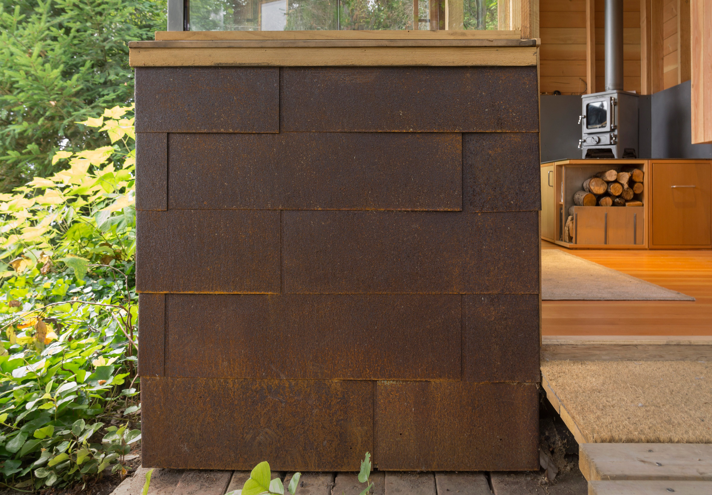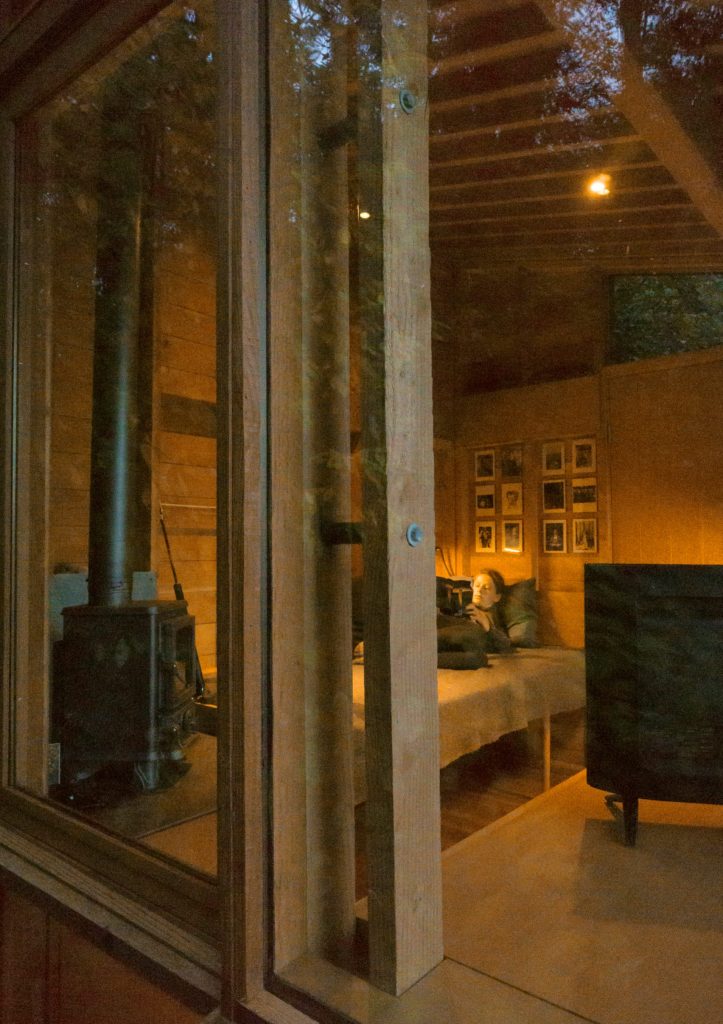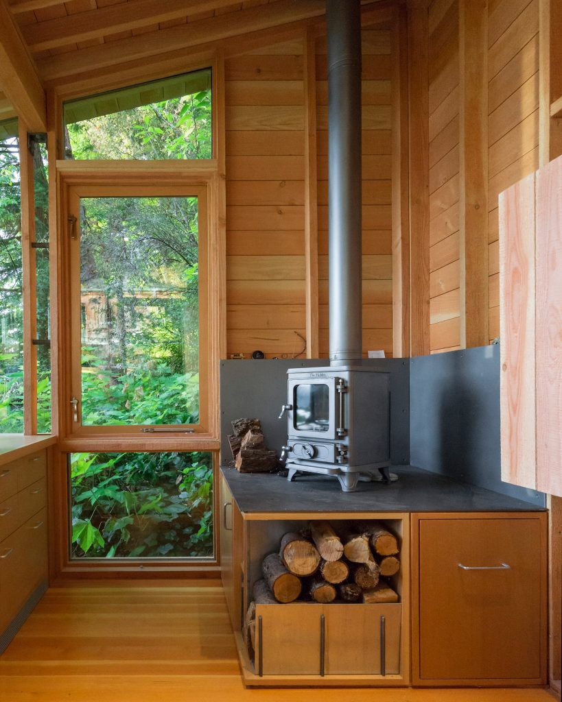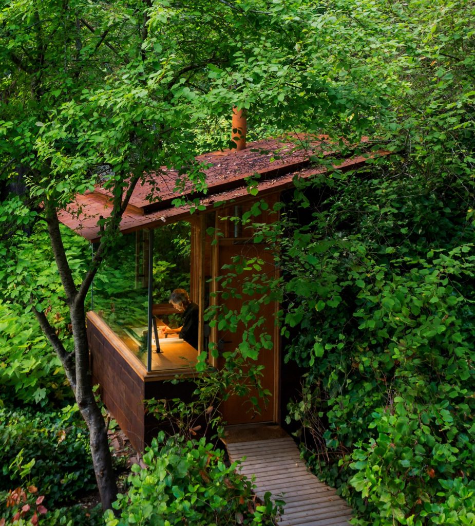 A házhoz csatolt, csupán, 7,5 négyzetméteres fabunker nap közben gyakran az apuka munkaállomása, estére pedig sokszor a fiatal, 12 éves lány hív át barátnőket ottalvós estére a kis házba. Szóval tökéletes kis csatolmány lett, gyerekkorunkban mi is imádtunk volna ilyen házikóban (rém)meséket mondani zseblámpával.